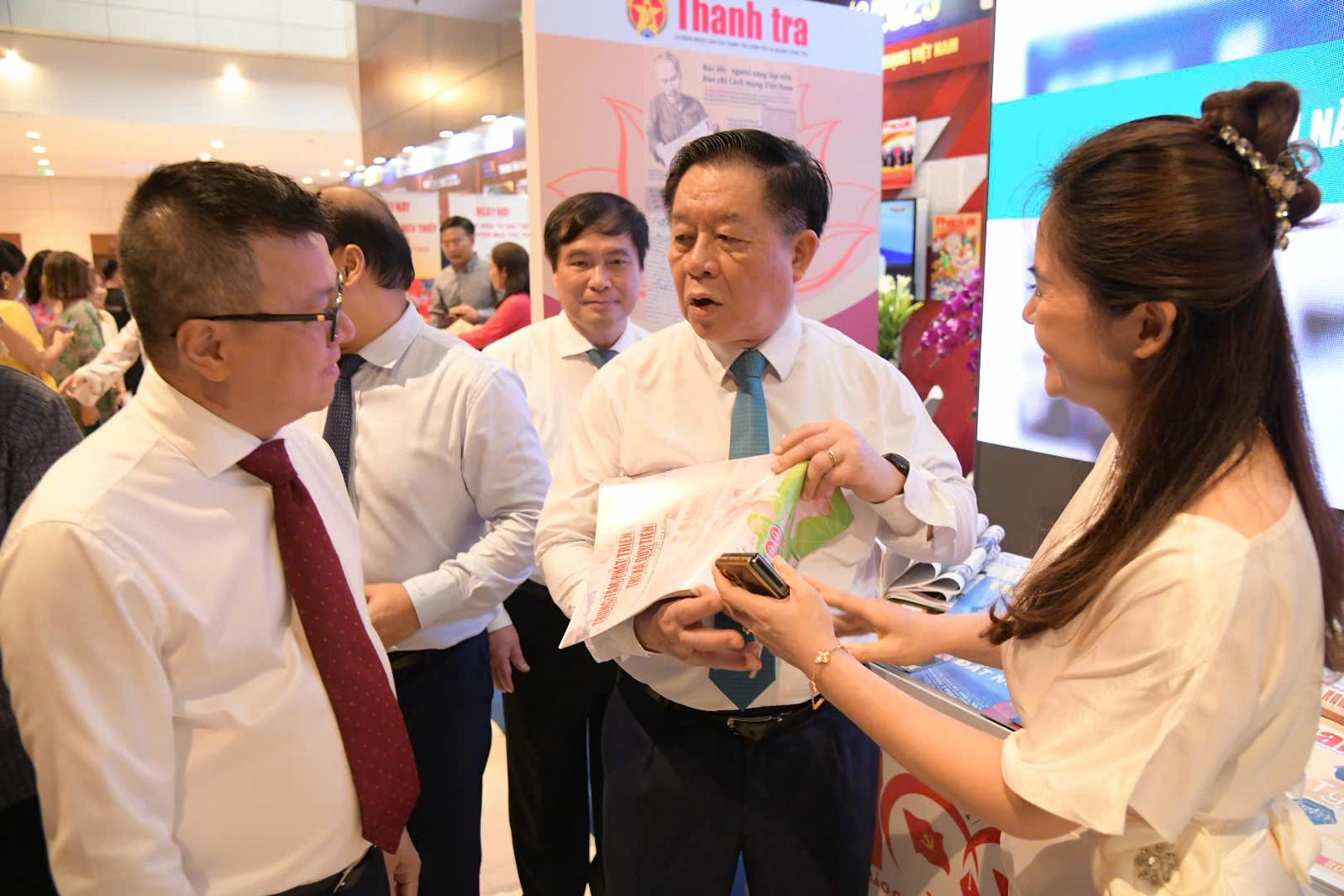Ông Ngô Minh Tuấn, Trưởng Ban Xây dựng Đảng, Tạp chí Cộng sản ghé thăm gian trưng bày Báo Thanh tra. Ảnh Huy Trần