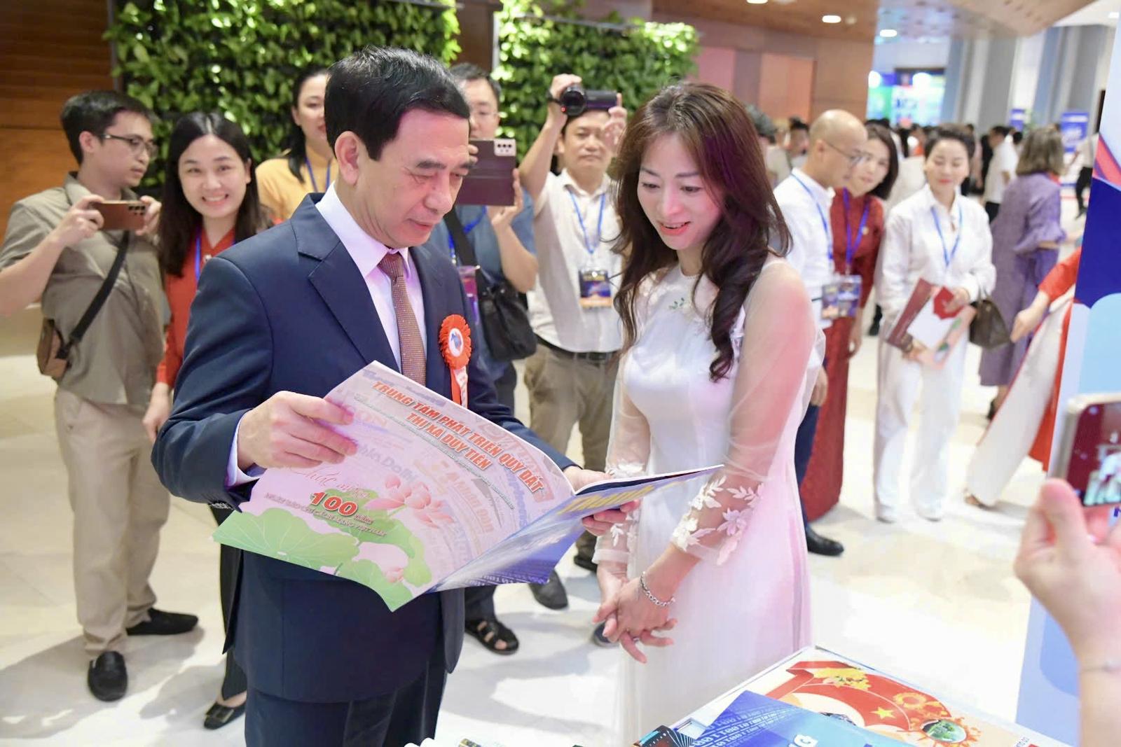 Ông Trần Thanh Lâm, Phó Bí thư Tỉnh ủy Bến Tre, nguyên Phó Trưởng ban Tuyên giáo Trung ương thăm gian trưng bày Báo Thanh tra. Ảnh: Huy Trần