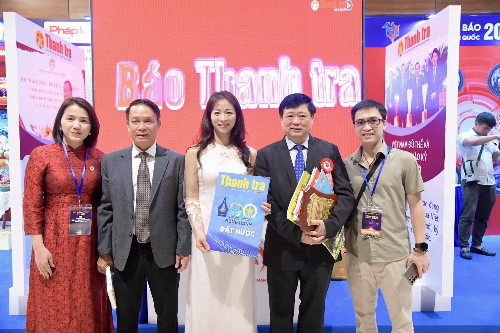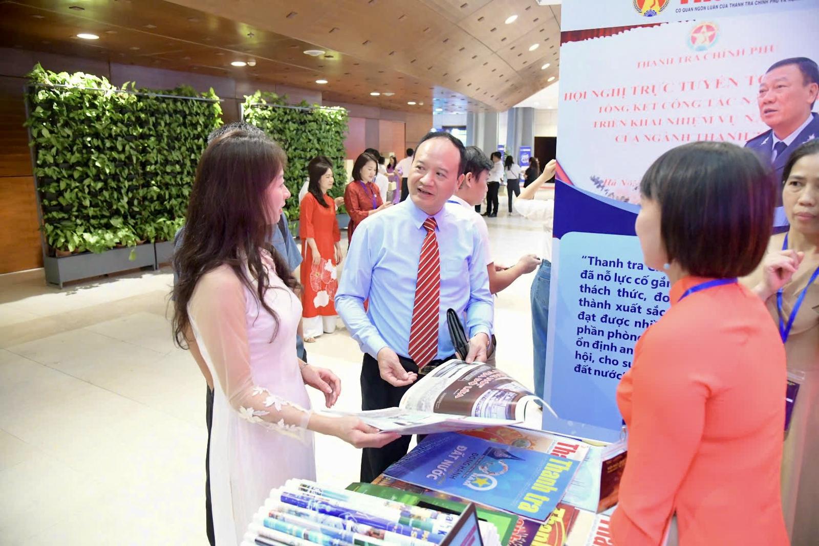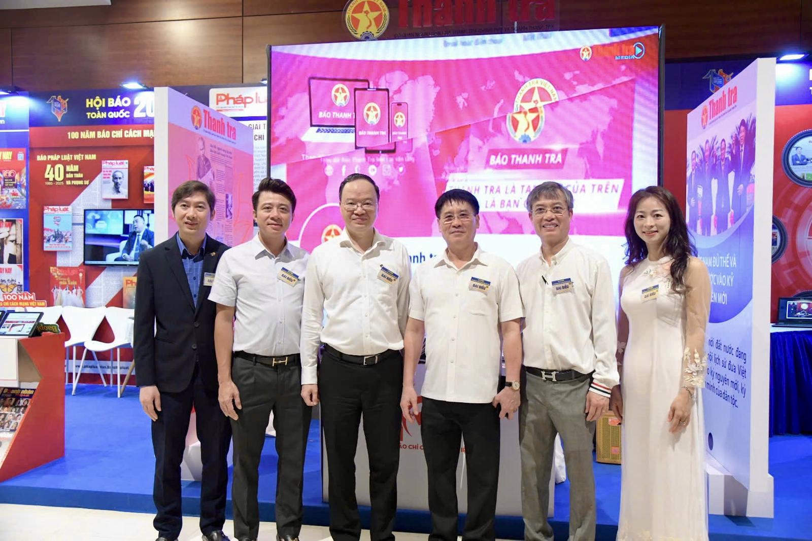 Thăm gian trưng bày của Báo Thanh tra, Phó Tổng Thanh tra Chính phủ Lê Sỹ Bảy (thứ ba từ phải sang) gửi lời chúc mừng đến toàn thể đội ngũ những người làm báo trên cả nước, nhất là đội ngũ làm báo Thanh tra - cơ quan ngôn luận của Thanh tra Chính phủ và ngành Thanh tra lời chúc sức khoẻ và lời chúc mừng tốt đẹp nhất. Ảnh: Huy Trần