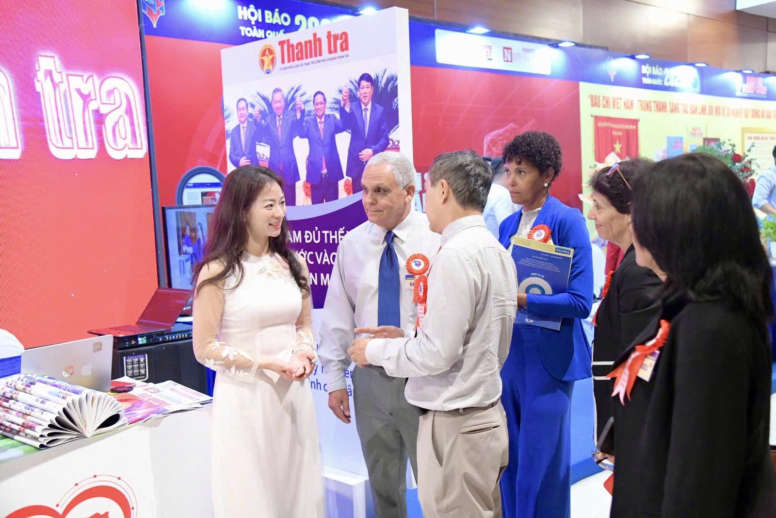 Đoàn đại biểu Nhà báo Cuba thăm gian hàng Báo Thanh tra. Ảnh: Huy Trần