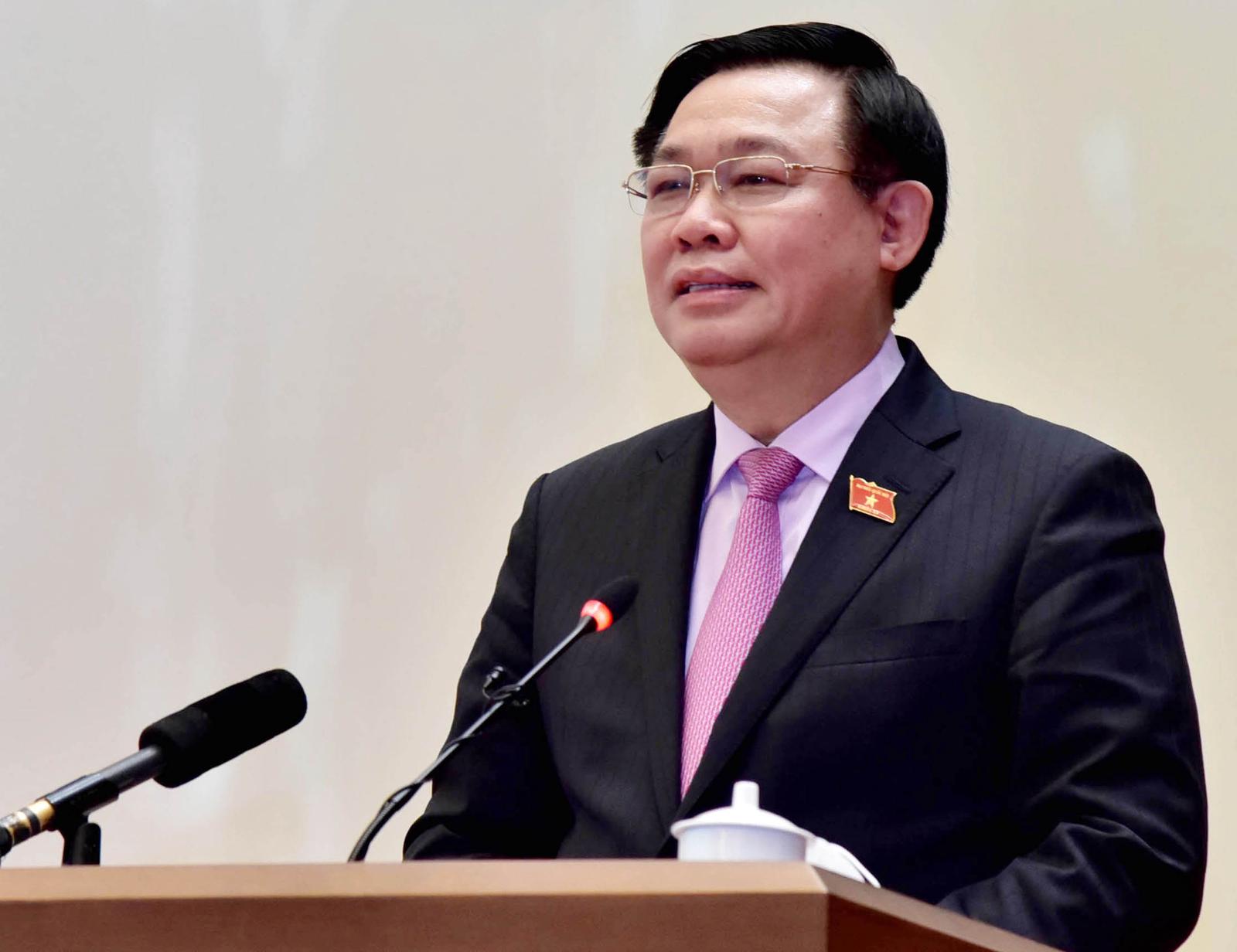 Phát biểu tại buổi gặp mặt, Chủ tịch Quốc hội Vương Đình Huệ nhắc lại những kết quả nổi bật của Quốc hội từ đầu nhiệm kỳ khoá XV đến nay.