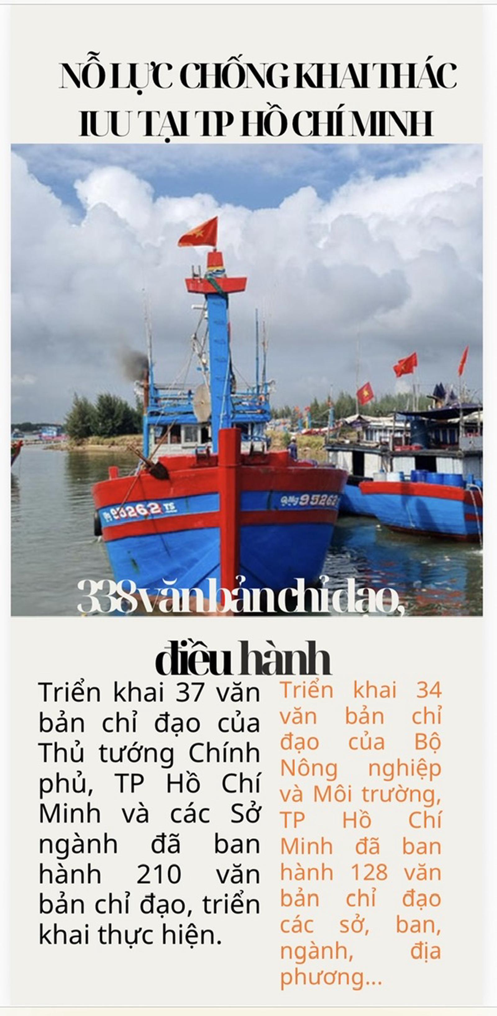 Qua thanh, kiểm tra, UBND TP Hồ Chí Minh đã chấn chỉnh nhiều tồn tại; tăng cường hiệu quả quản lý nhà nước về chống khai thác IUU. Từ năm 2019 đến nay, Công an tỉnh Bà Rịa - Vũng Tàu (cũ) và Công an TP Hồ Chí Minh (sau sáp nhập) đã xử phạt vi phạm hành chính 5 vụ việc/45 đối tượng là các chủ tàu, thuyền trưởng, máy trưởng, thuyền viên về các hành vi vi phạm trong hoạt động khai thác hải sản trên biển...