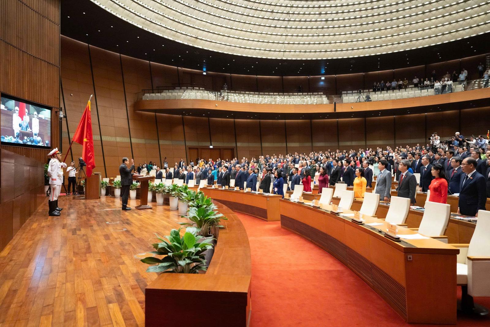 Chủ tịch Quốc hội Trần Thanh Mẫn thực hiện nghi lễ tuyên thệ nhậm chức. Ảnh: P.Thắng