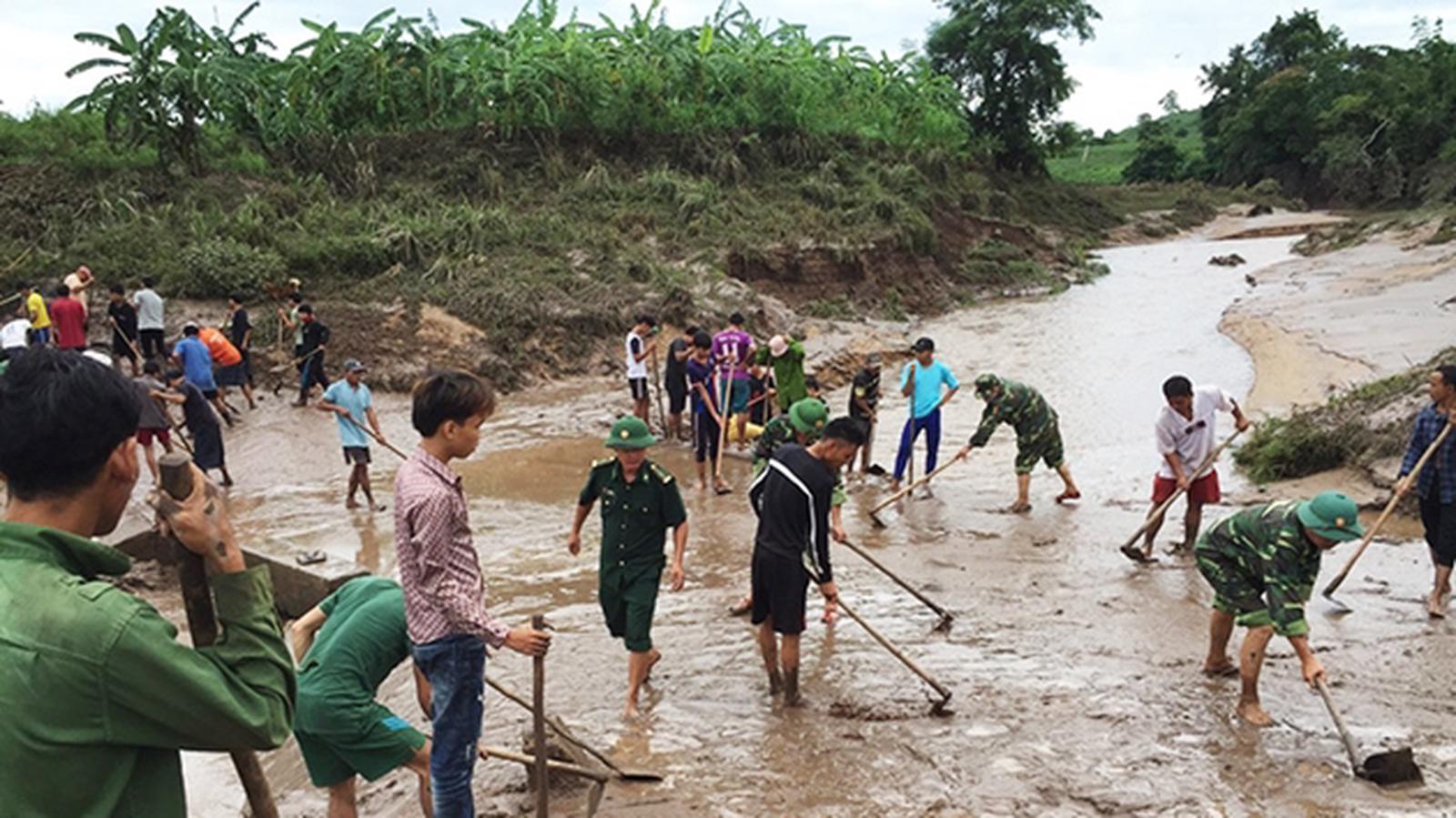 Đồn Biên phòng Thanh, xã Thanh, huyện Hướng Hóa, Quảng Trị giúp dân khắc phục khó khăn do bão lũ số 5 gây ra