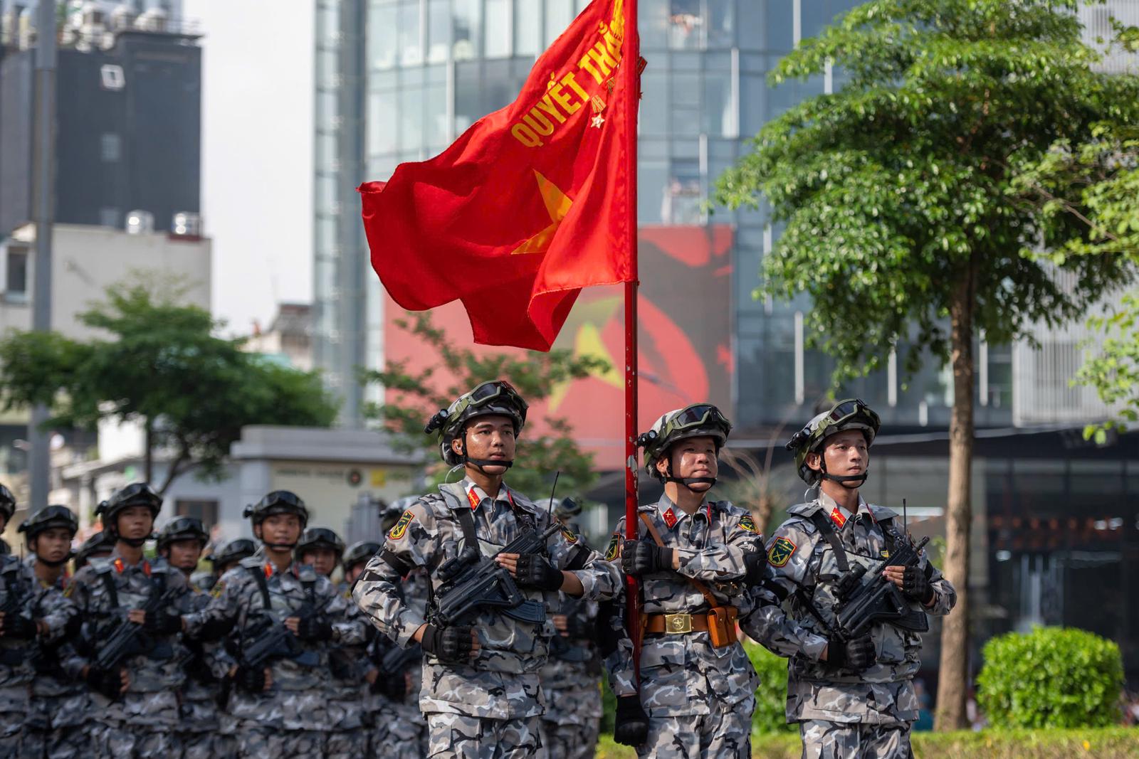 “Lực lượng tham gia diễu binh nói lên sức mạnh của lực lượng vũ trang cũng là quân đội nhân dân, công an nhân dân và hình ảnh đẹp nhất là hình ảnh đi trong vòng tay Nhân dân”, theo Thứ trưởng Lê Hải Bình. Ảnh: P.Thắng