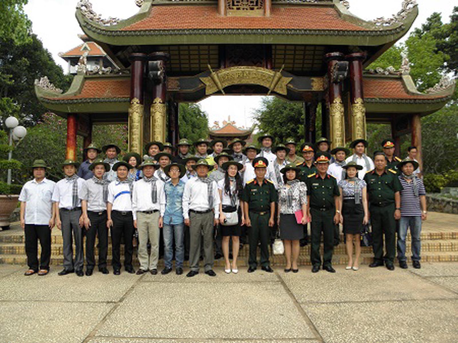 Đoàn cán bộ, học viên Học viện Chính trị Quốc gia Hồ Chí Minh tìm hiểu truyền thống bất khuất của quân và dân miền Nam tại Đền Bến Dược, TP Hồ Chí Minh. Trong ảnh: Đoàn cán bộ, học viên chụp ảnh với lãnh đạo Bộ Tư lệnh TP Hồ Chí Minh. Ảnh: Đ.H.A