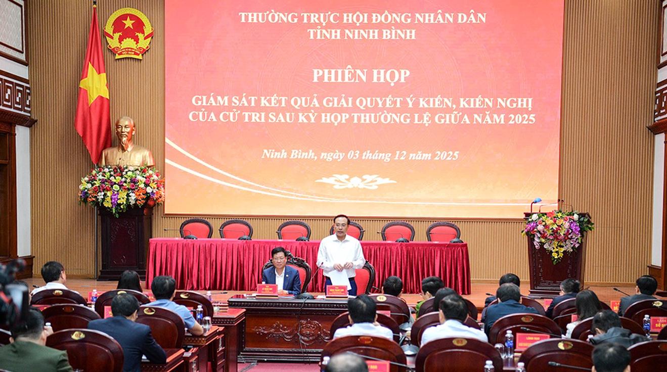 (Thanh tra) - Ngày 3/12, Thường trực HĐND tỉnh Ninh Bình tổ chức phiên họp giám sát kết quả giải quyết ý kiến, kiến nghị của cử tri từ sau kỳ họp thường lệ giữa năm 2025.