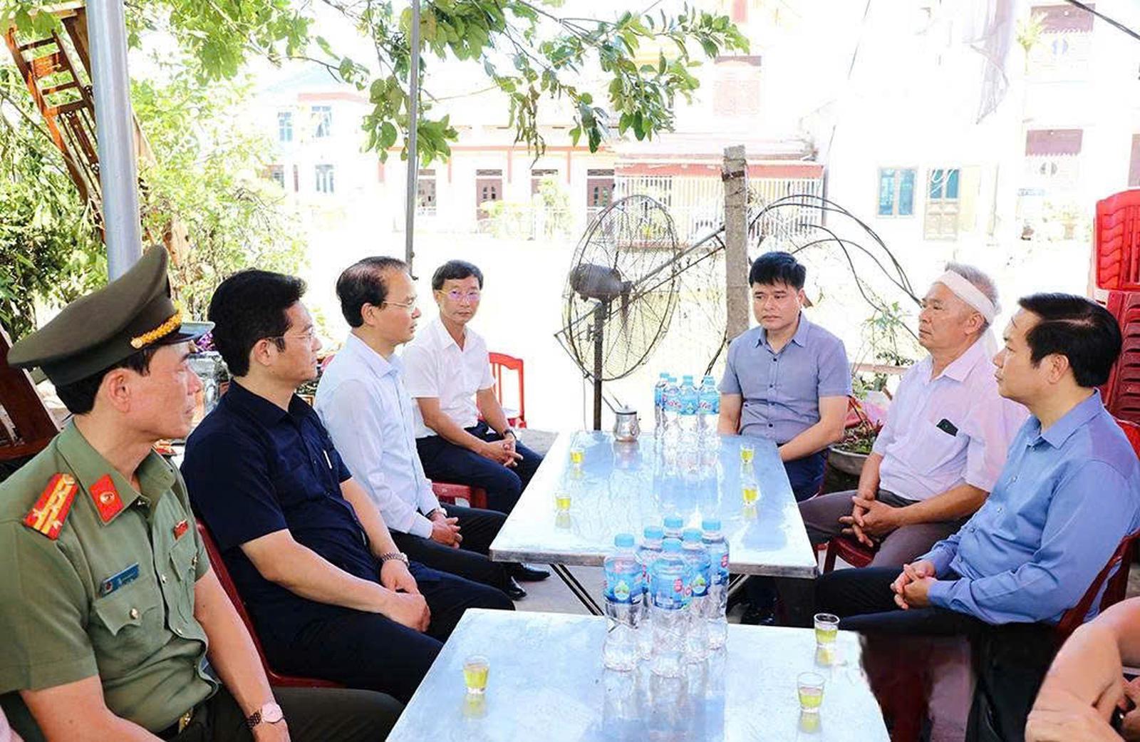 Bí thư Tỉnh uỷ Ninh Bình Đặng Xuân Phong và Chủ tịch UBND tỉnh thăm hỏi, động viên gia đình có người thiệt mạng do bão số 10 ở xã Hồng Phong. Ảnh: Báo Ninh Bình