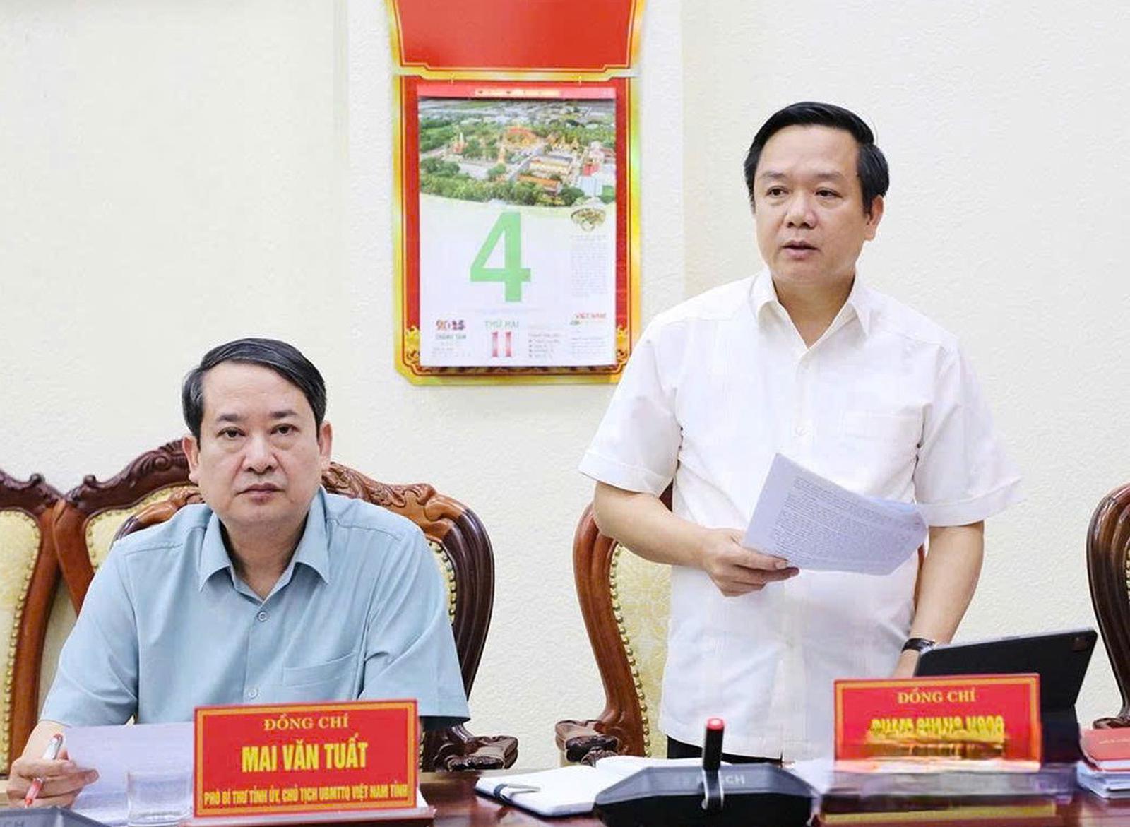 Chủ tịch UBND tỉnh Ninh Bình Phạm Quang Ngọc phát biểu tại hội nghị. Ảnh: BNB