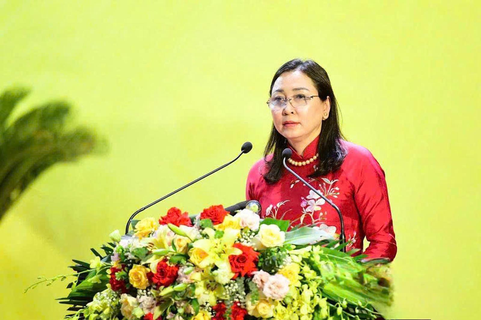 Bà Đinh Thị Lụa, Phó Bí thư Thường trực Tỉnh ủy Hà Nam công bố các Quyết định của ba tỉnh đối với sáp nhập xã, phường. Ảnh: BNB