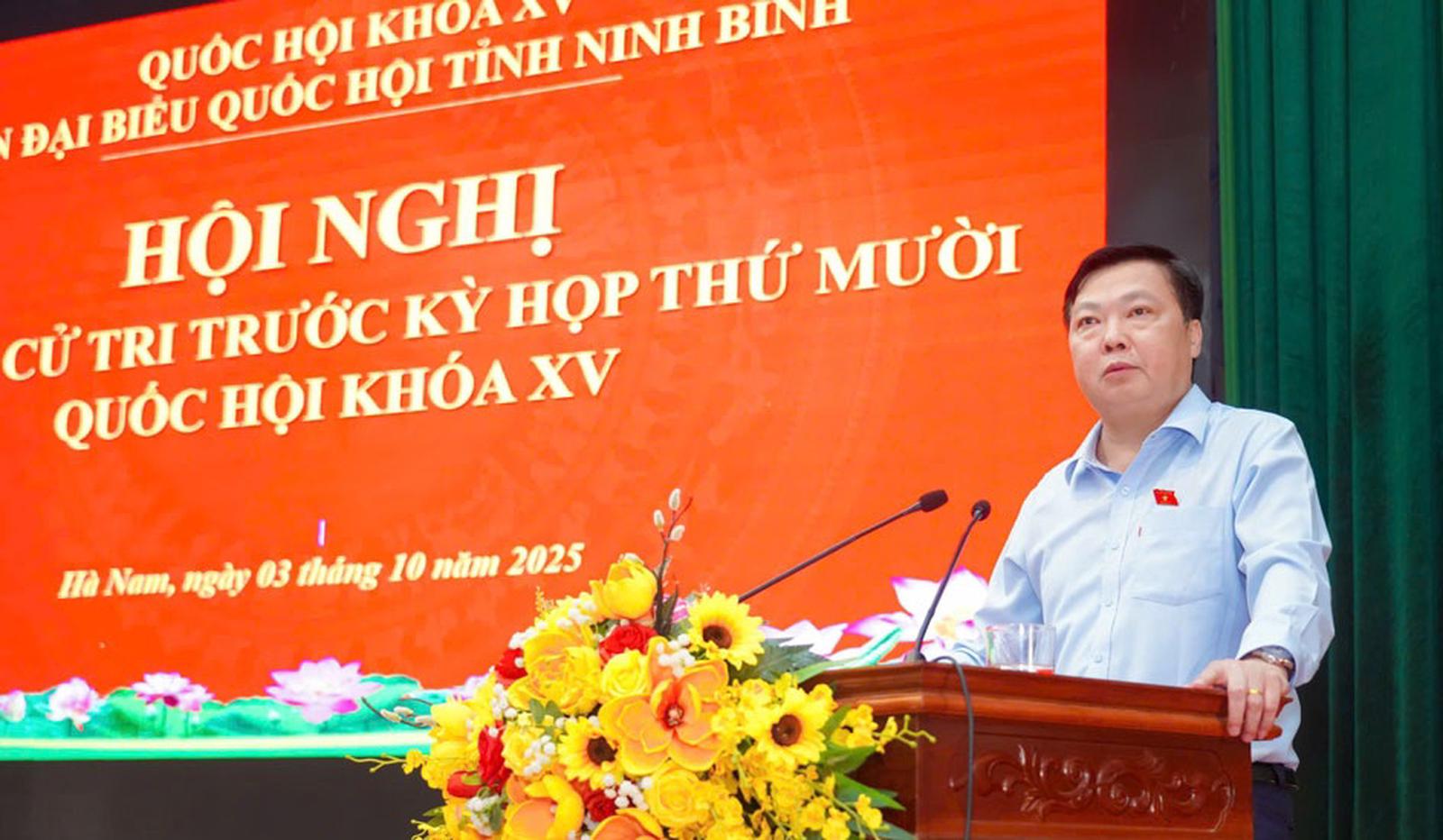 Thay mặt Đoàn ĐBQH tỉnh, Phó Trưởng Đoàn ĐBQH tỉnh Ninh Bình Phạm Hùng Thắng đã thông báo nhanh với cử tri về tình hình phát triển kinh tế-xã hội của đất nước, của tỉnh trong 9 tháng năm 2025; đặc biệt là những thiệt hại của cơn bão số 10 vừa qua, công tác khắc phục hậu quả sau bão để nhanh chóng ổn định đời sống, khôi phục sản xuất cho Nhân dân vùng bị thiệt hại.