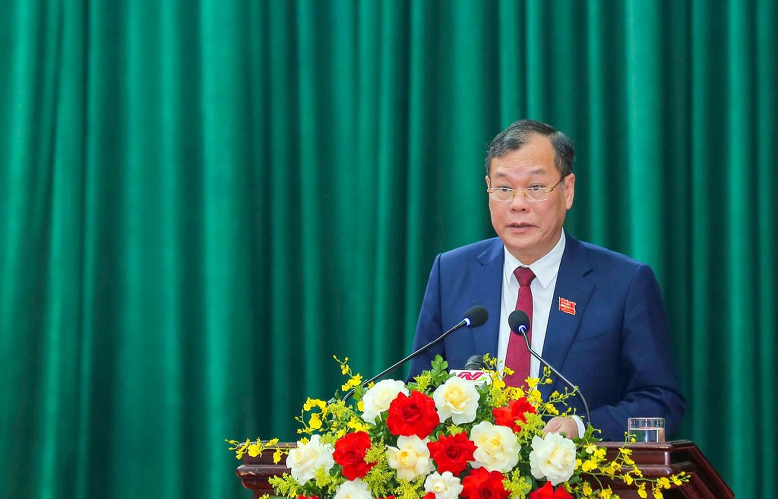 Chủ tịch UBND tỉnh Ninh Bình Trần Huy Tuấn phát biểu tại Kỳ họp. Ảnh: Báo Ninh Bình