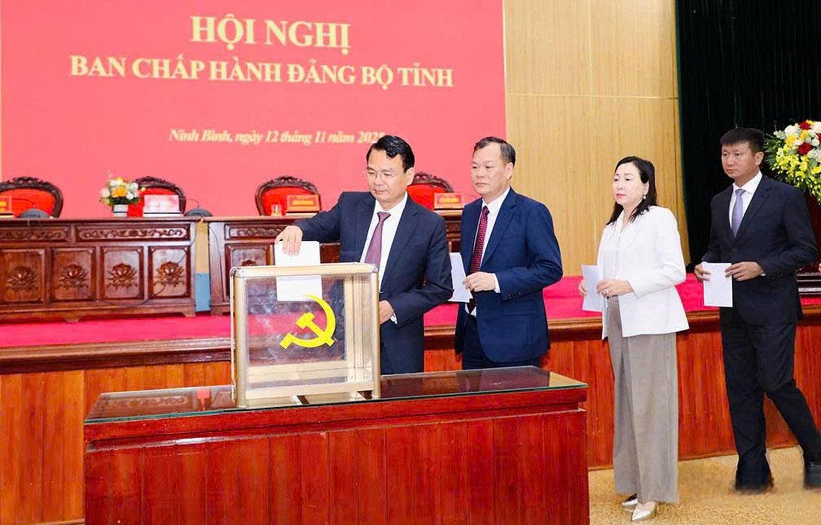 Ban Chấp hành Đảng bộ tỉnh Ninh Bình đã tiến hành biểu quyết bằng phiếu kín. Kết quả, 100% Ủy viên Ban Chấp hành Đảng bộ tỉnh có mặt tại hội nghị đồng ý đề nghị HĐND tỉnh miễn nhiệm chức danh Chủ tịch UBND tỉnh Ninh Bình nhiệm kỳ 2021-2026 đối với ông Phạm Quang Ngọc - Phó Bí thư Tỉnh ủy Hưng Yên và 100% đại biểu có mặt thống nhất giới thiệu ông Trần Huy Tuấn - Phó Bí thư Tỉnh ủy Ninh Bình để HĐND tỉnh bầu giữ chức Chủ tịch UBND tỉnh nhiệm kỳ 2021-2026.