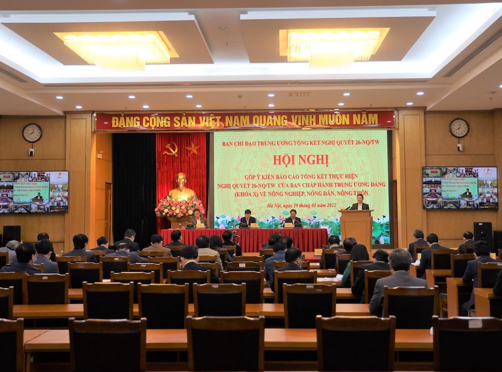 Ngày 19/1, Ban Chỉ đạo Trung ương tổng kết Nghị quyết 26 (Ban Chỉ đạo) và Văn phòng Trung ương Đảng tổ chức hội nghị góp ý kiến báo cáo tổng kết thực hiện Nghị quyết 26 của Ban Chấp hành Trung ương (Khóa X) về nông nghiệp, nông dân và nông thôn.