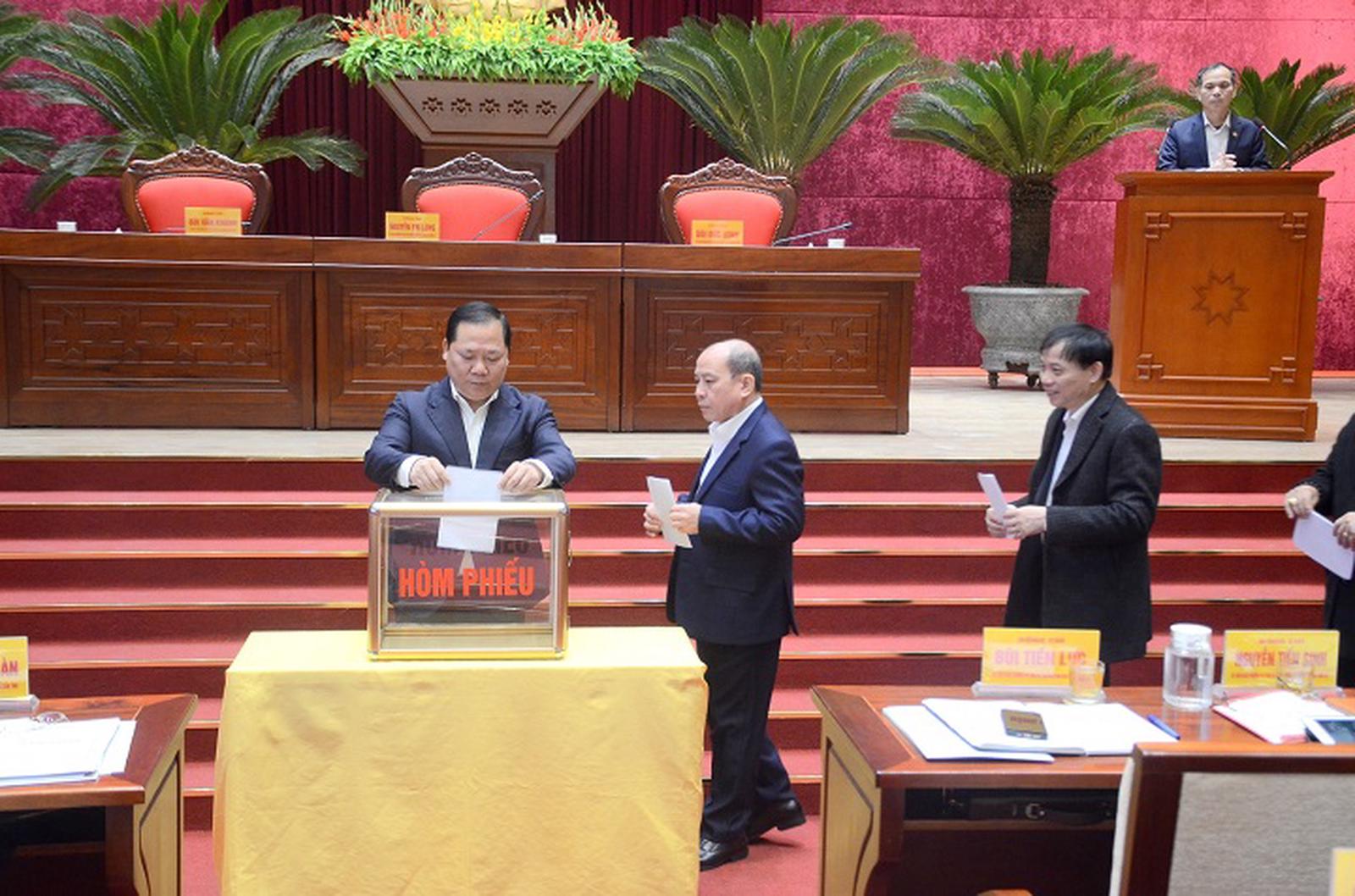 Các đại biểu bỏ phiếu thực hiện quy trình về công tác cán bộ. Ảnh: Lê Thuỳ (CTTĐT)
