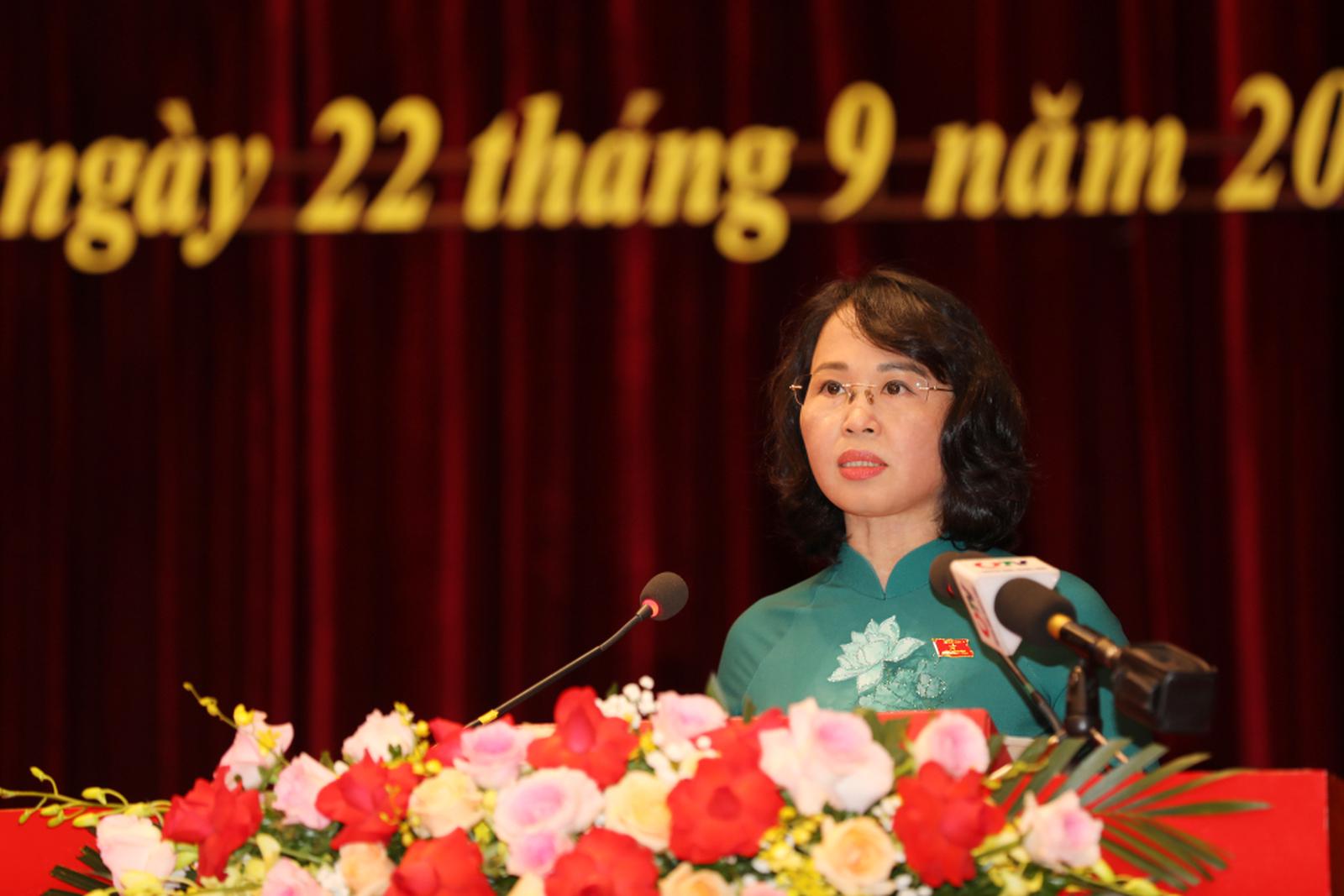 Bà Trịnh Thị Minh Thanh, Phó Bí thư Thường trực Tỉnh ủy, Chủ tịch HĐND tỉnh, phát biểu. Ảnh: Thanh Tùng