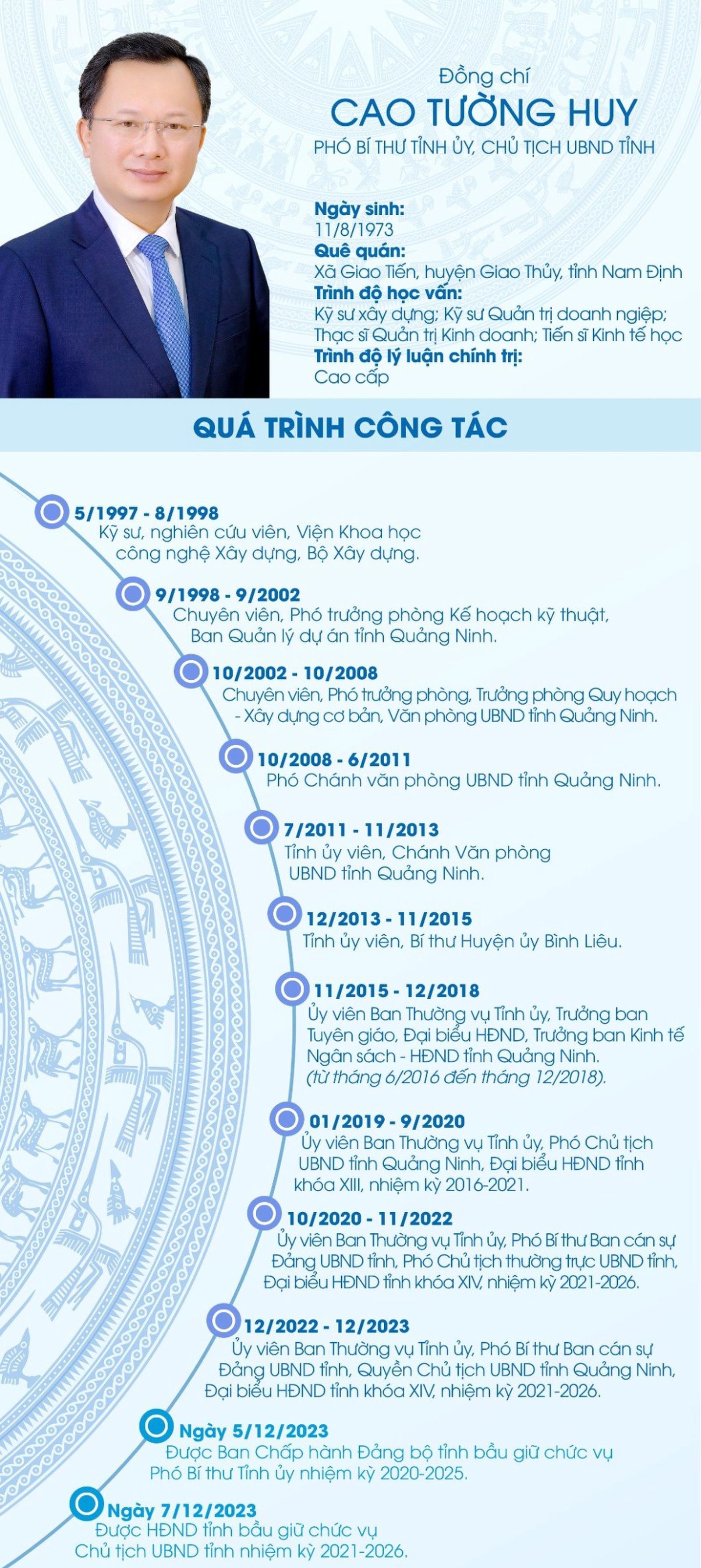 Trên cơ sở kết quả giới thiệu tại các hội nghị, Ban Thường vụ Tỉnh ủy đã có tờ trình báo cáo Ban Bí thư, Ban Tổ chức Trung ương và được đồng ý giới thiệu ông Cao Tường Huy, Ủy viên Ban Thường vụ Tỉnh ủy, Quyền Chủ tịch UBND tỉnh để bầu giữ chức vụ Phó Bí thư Tỉnh ủy nhiệm kỳ 2020 - 2025, Chủ tịch UBND tỉnh Quảng Ninh nhiệm kỳ 2021 - 2026.