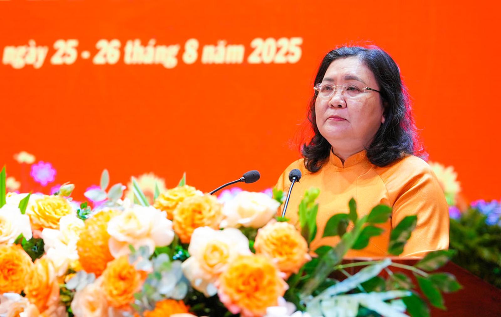 Phó Bí thư Thường trực Tỉnh ủy Hồ Thị Hoàng Yến phát biểu chỉ đạo Đại hội. Ảnh: UBND tỉnh Vĩnh Long