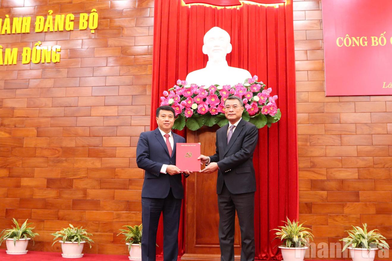 Trưởng Ban Tổ Chức Trung ương Lê Minh Hưng trao quyết định cho tân Bí thư Tỉnh ủy Lâm Đồng Y Thanh Hà Niê Kđăm. Ảnh: Vũ Linh