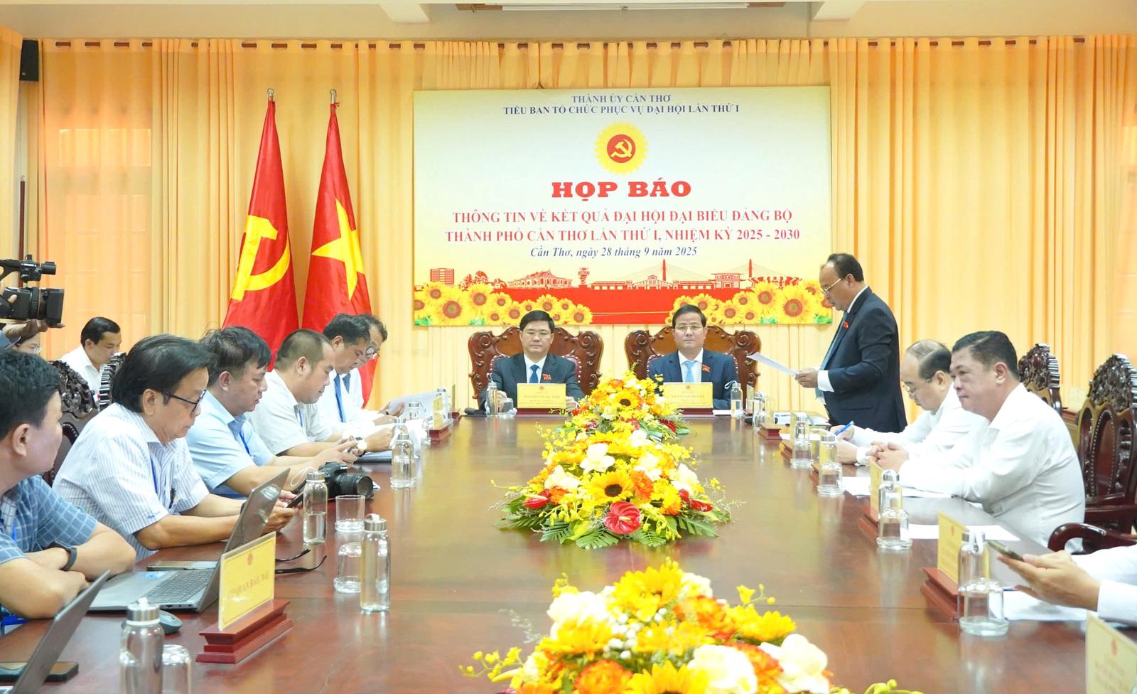Họp báo công bố kết quả thành công của Đại hội đại biểu Đảng bộ TP Cần Thơ lần thứ I. Ảnh: Ái Phương