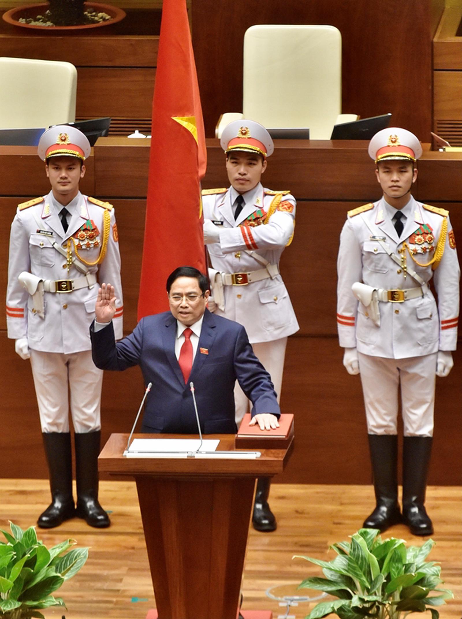 Tân Thủ tướng Chính phủ Phạm Minh Chính tuyên thệ, nhậm chức. Ảnh: Đ.X