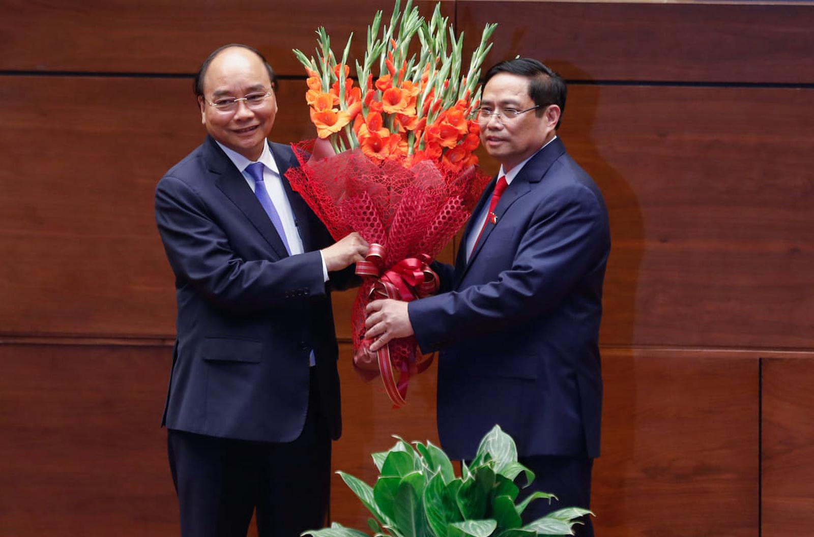Nhân dịp này, tân Thủ tướng Chính phủ Phạm Minh Chính gửi đến Chủ tịch nước Nguyễn Xuân Phúc bó hoa tươi thắm, đồng thời chúc ông luôn mạnh khỏe, hạnh phúc, hoàn thành xuất sắc trong trách trên cương vị mới.