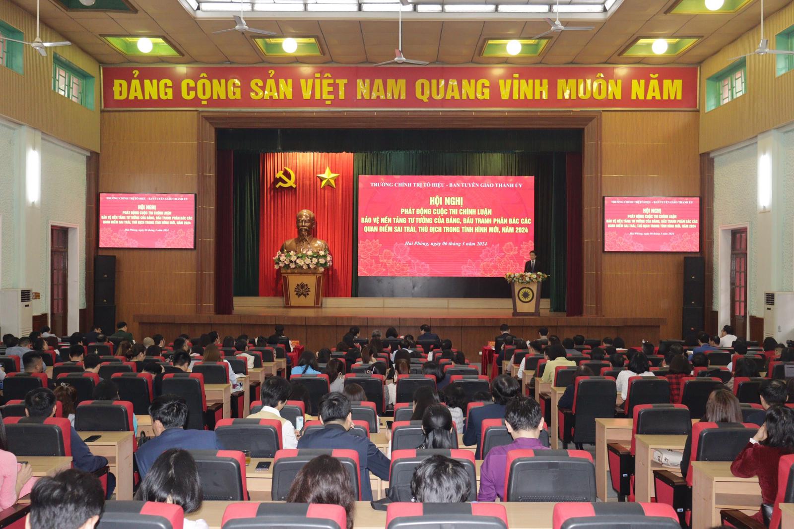 (Thanh tra) - Sáng 6/3, Ban Tuyên giáo Thành ủy phối hợp với Trường Chính trị Tô Hiệu tổ chức phát động Cuộc thi Chính luận bảo vệ nền tảng tư tưởng của Đảng, đấu tranh phản bác các quan điểm sai trái, thù địch trong tình hình mới năm 2024.