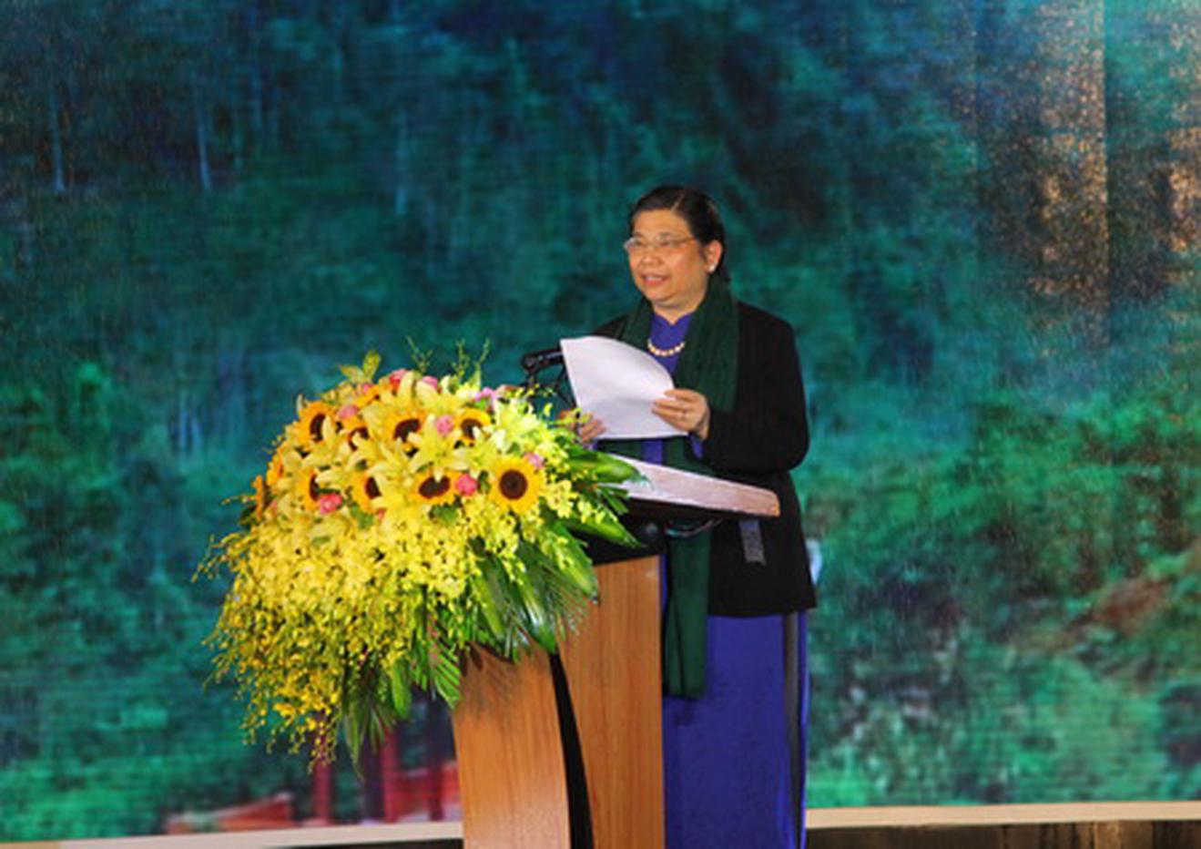 Ủy viên Bộ Chính trị, Phó Chủ tịch Quốc hội Tòng Thị Phóng phát biểu tại Lễ Kỷ niệm. Ảnh: TH