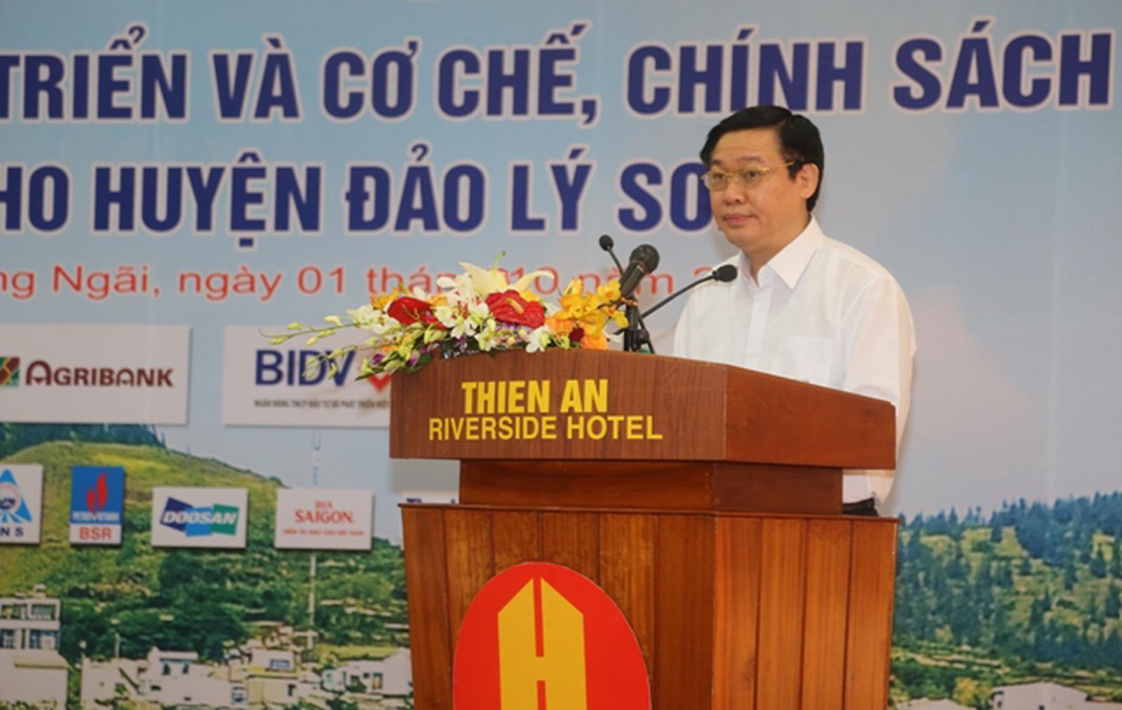 Tới dự và chỉ đạo hội thảo, Phó Thủ tướng Chính phủ Nguyễn Xuân Phúc nhấn mạnh: Việc Ban Kinh tế Trung ương và Tỉnh ủy Quảng Ngãi tổ chức hội thảo này là bước đi nhằm cụ thể hóa Chiến lược Biển mà Trung ương đã đề ra trên địa bàn tỉnh Quảng Ngãi, huyện đảo Lý Sơn. Đặt ra nhiệm vụ phát triển kinh tế biển của huyện đảo Lý Sơn trong tình hình mới phải bảo đảm mục tiêu phát triển bền vững (hiện còn đến 25% hộ nghèo), giảm nghèo bền vững gắn với bảo đảm an ninh quốc phòng, bảo vệ chủ quyền quốc gia.