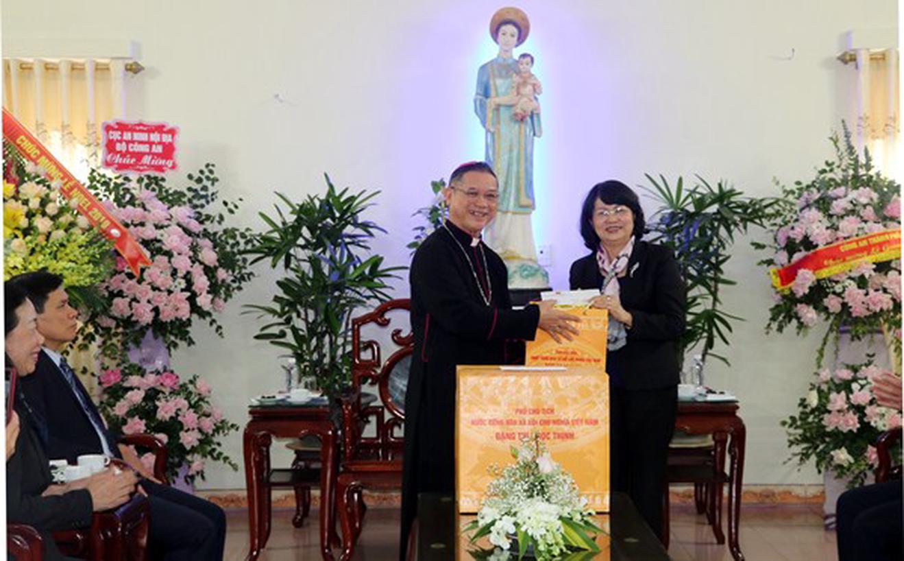 Thay mặt lãnh đạo Đảng, Nhà nước, Mặt trận Tổ quốc Việt Nam, Phó Chủ tịch nước chúc mừng Giám mục Giáo phận Bùi Chu Vũ Đình Hiệu và các chức sắc, tu sĩ, đồng bào Công giáo đón mùa Giáng sinh, năm mới an lành, hạnh phúc.