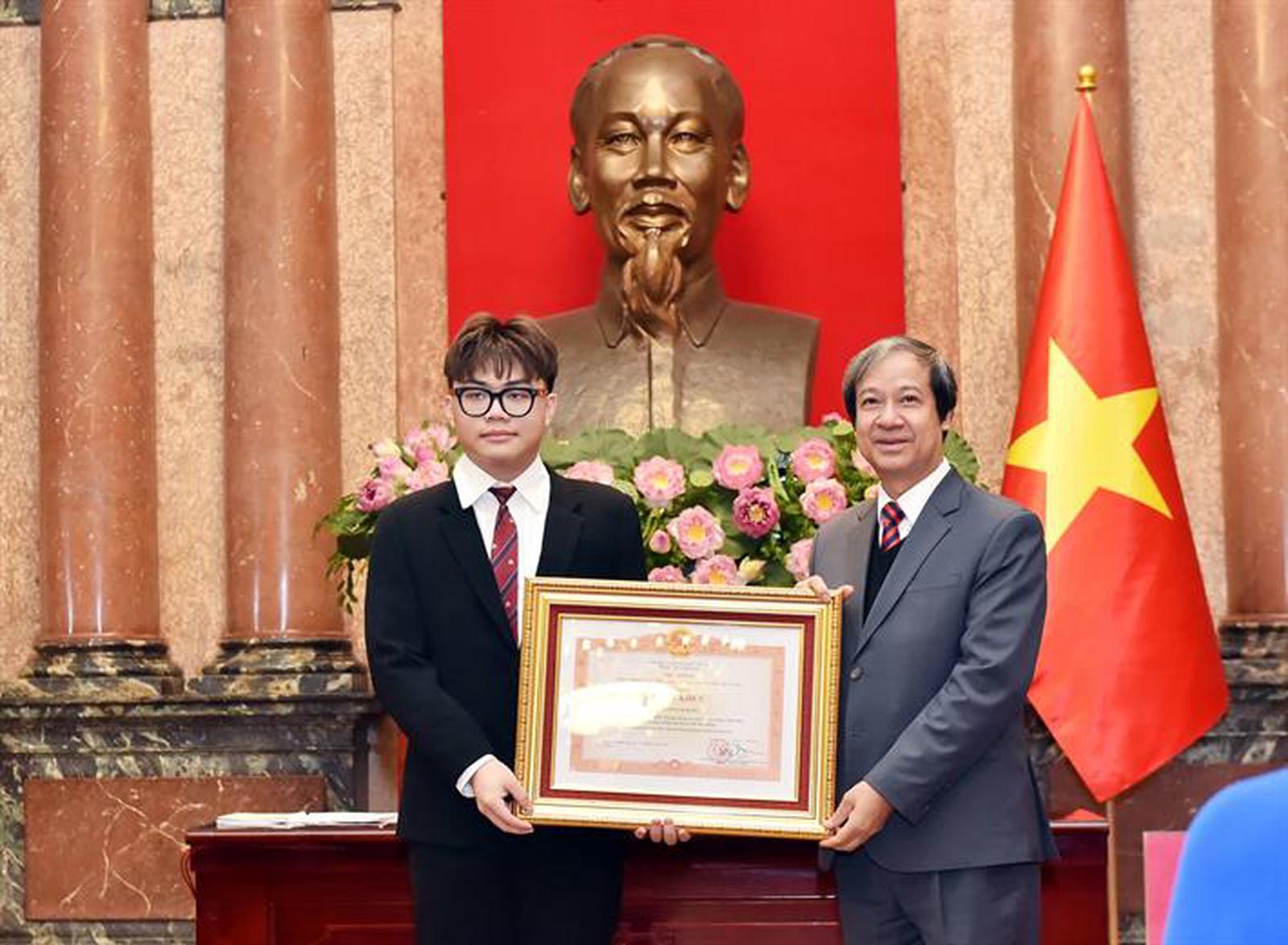 Thay mặt lãnh đạo Bộ GDĐT, Bộ trưởng Nguyễn Kim Sơn bày tỏ lời cảm ơn sâu sắc đến Chủ tịch nước, Phó Chủ tịch nước và Văn phòng Chủ tịch nước đã quan tâm đến học sinh đoạt giải trong các kỳ thi Olympic khu vực, quốc tế, Cuộc thi Khoa học kỹ thuật quốc tế nói riêng và quan tâm đến ngành Giáo dục nói chung.