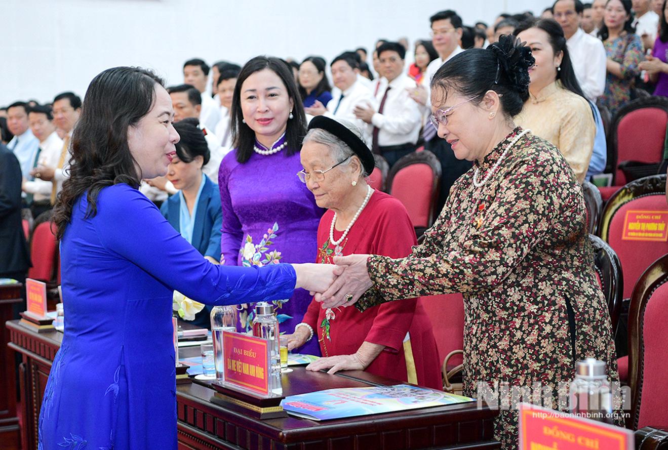 Phó Chủ tịch nước, Phó Chủ tịch thứ nhất Hội đồng Thi đua - Khen thưởng Trung ương Võ Thị Ánh Xuân với các đại biểu dự Đại hội. Ảnh: Báo Ninh Bình