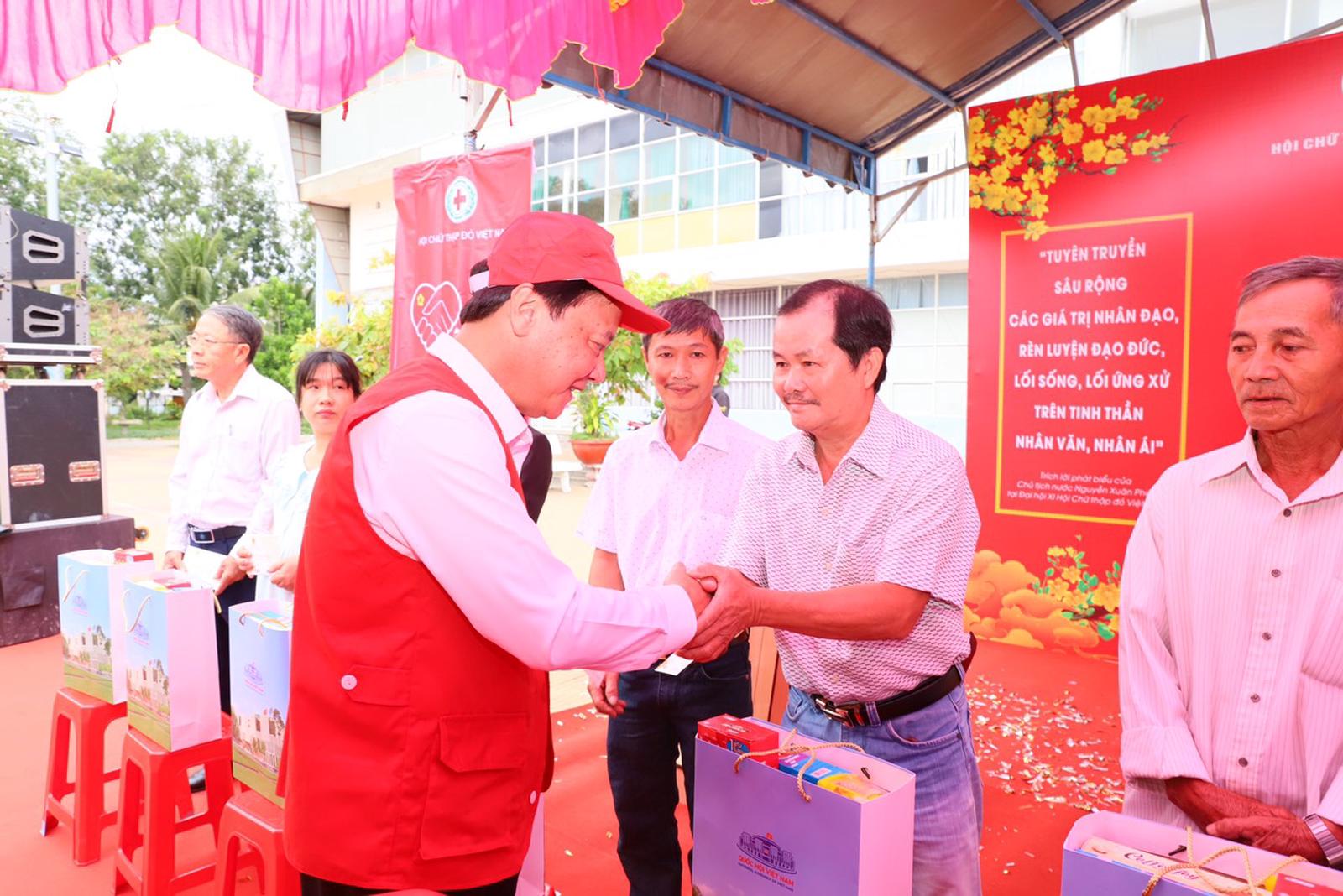 Phó Chủ tịch Quốc hội Nguyễn Khắc Định trao tặng 15 suất quà cho gia đình chính sách, tặng 200 suất quà cho hộ nghèo và 200 suất quà cho đoàn viên, người lao động có hoàn cảnh khó khăn. Ảnh: V.N