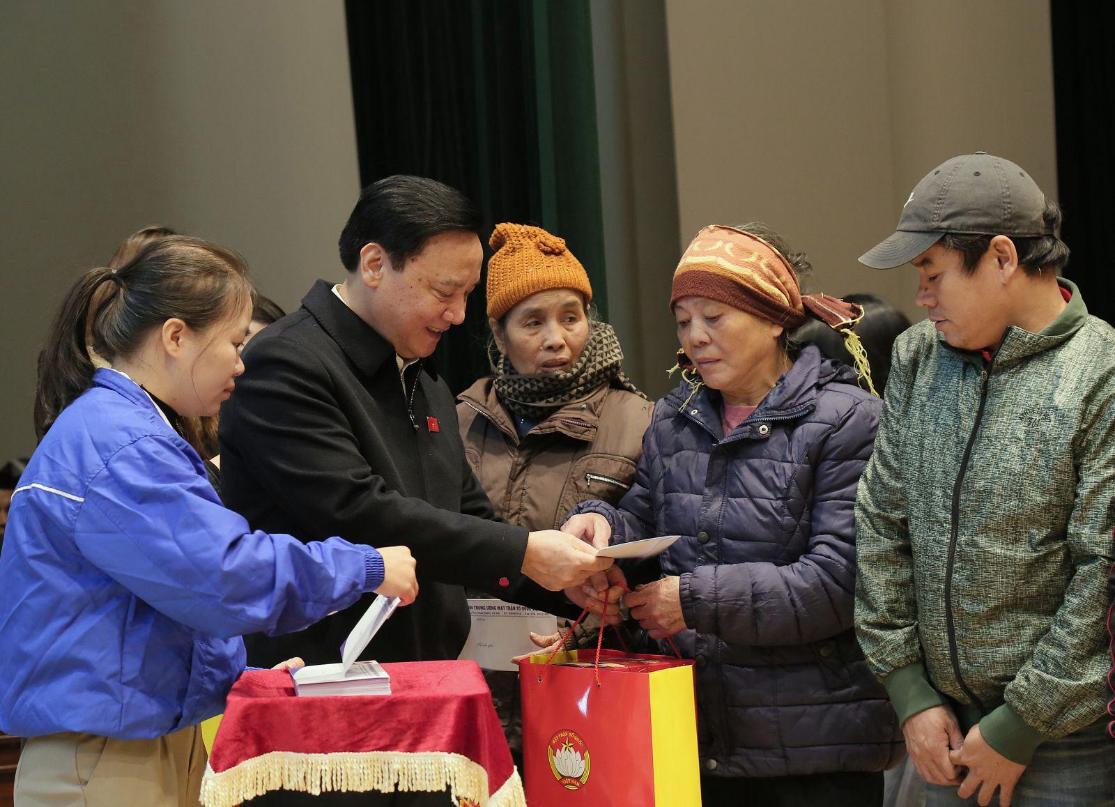 Phó Chủ tịch Quốc hội Nguyễn Khắc Định trao quà Tết cho người nghèo, người có hoàn cảnh khó khăn của huyện Đông Hưng. Ảnh: TĐ