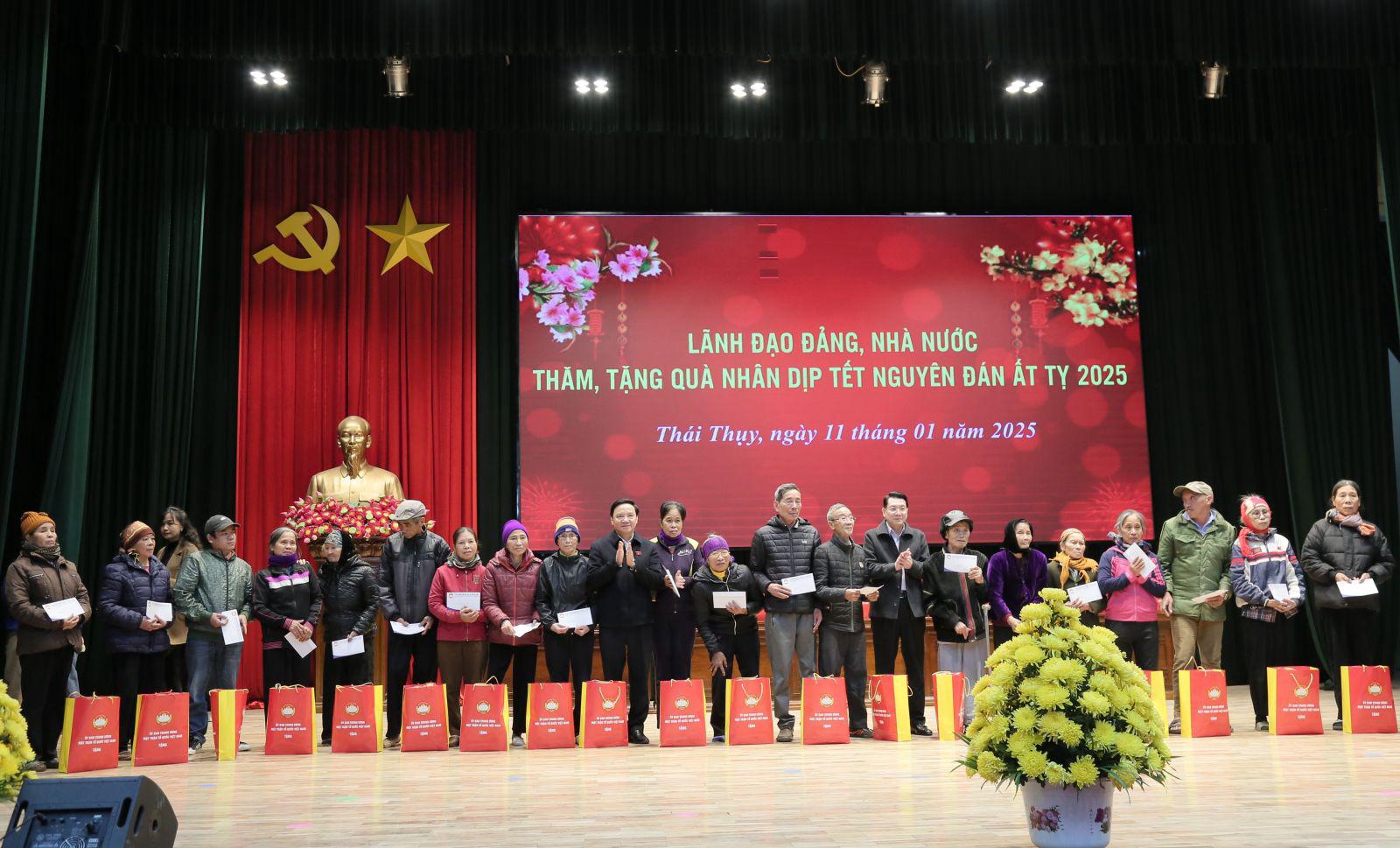 Dịp này, Phó Chủ tịch Quốc hội Nguyễn Khắc Định cùng đại diện Tổng Liên đoàn Lao động, Tập đoàn Dầu khí Việt Nam, Ngân hàng Nông nghiệp và Phát triển nông thôn Việt Nam chi nhánh Bắc Thái Bình đã trao 500 suất quà Tết cho hộ nghèo, cận nghèo, hộ có hoàn cảnh khó khăn thuộc 2 huyện Thái Thụy, Đông Hưng.