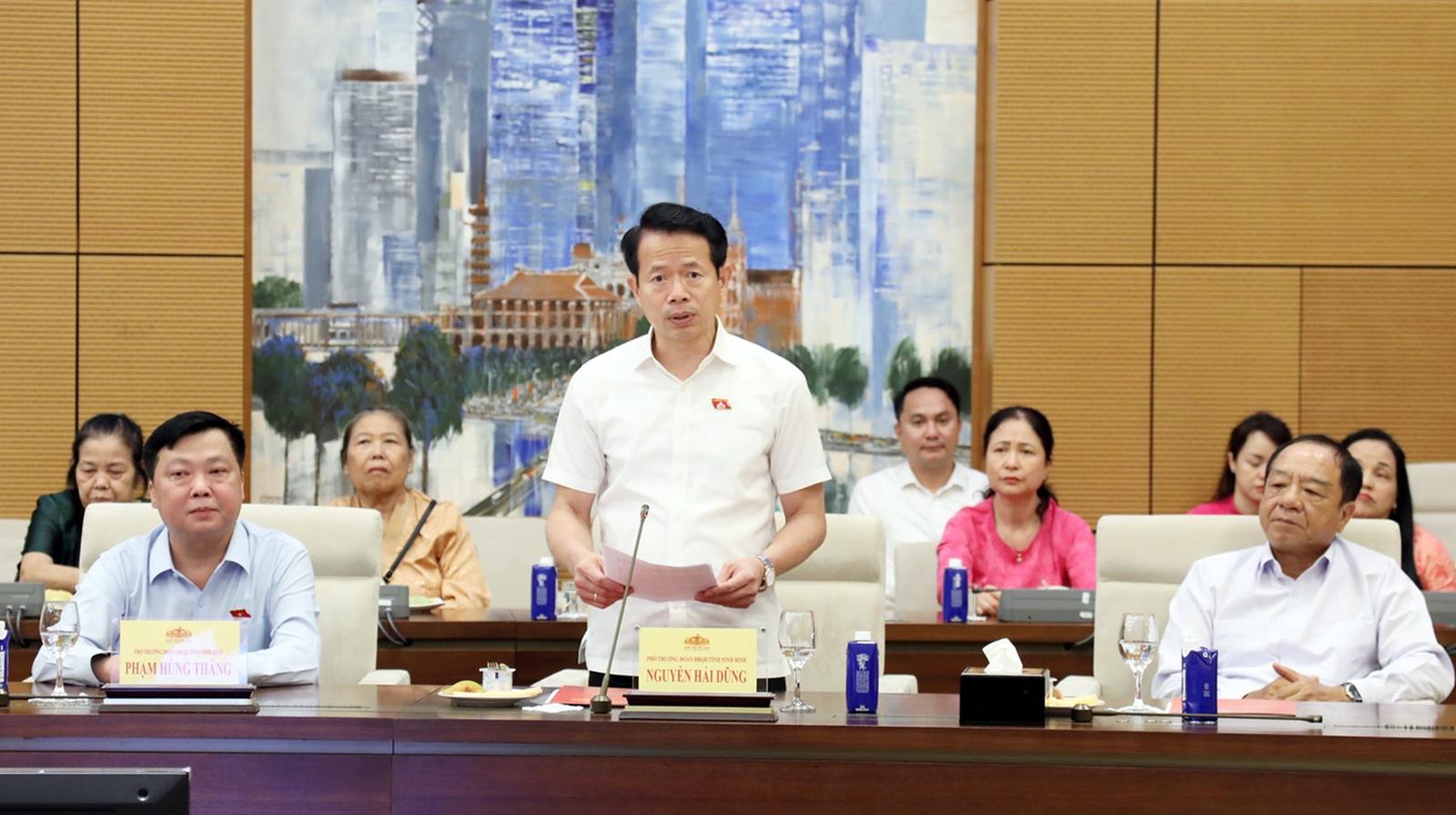 Báo cáo tóm tắt một số nét nổi bật về tình hình kinh tế - xã hội của tỉnh và hoạt động của ĐBQH tỉnh Khóa XV, Phó Trưởng đoàn ĐBQH tỉnh Ninh Bình cho biết, trong nhiệm kỳ Khóa XV, Đoàn ĐBQH tỉnh Ninh Bình đã tham gia đầy đủ, có trách nhiệm đối với các hoạt động của Quốc hội, đồng hành cùng Quốc hội để quyết nghị và thông qua nhiều vấn đề quan trọng, đáp ứng kịp thời yêu cầu đòi hỏi của thực tiễn đất nước, cũng như mong mỏi của cử tri và Nhân dân.