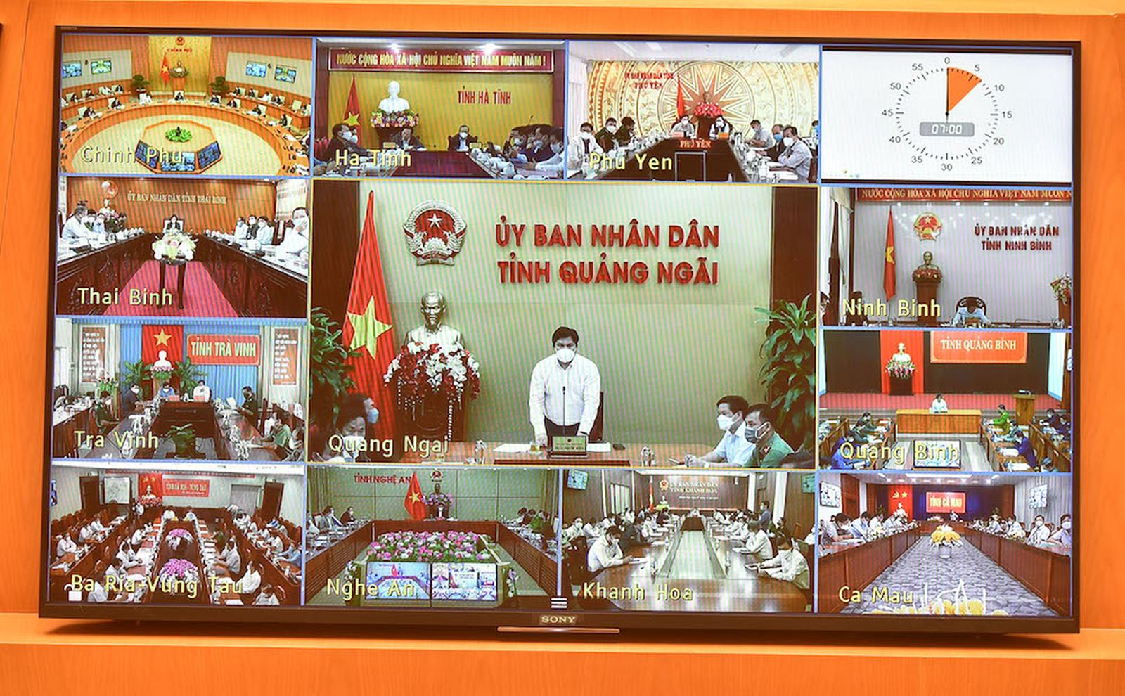 Phó Thủ tướng Lê Văn Thành, Trưởng Ban Chỉ đạo quốc gia về phòng chống thiên tai, chủ trì cuộc họp trực tuyến với các bộ, ban, ngành và 28 tỉnh, thành phố để triển khai công tác ứng phó với cơn bão có tên quốc tế RAI. Ảnh: Đ.Tuân