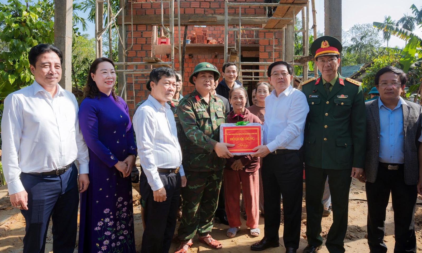 Phó Thủ tướng Hồ Quốc Dũng và Đoàn công tác đến thăm hỏi, trao quà hỗ trợ người dân khắc phục hậu quả thiên tai trên địa bàn thành phố Huế. Ảnh: PNM