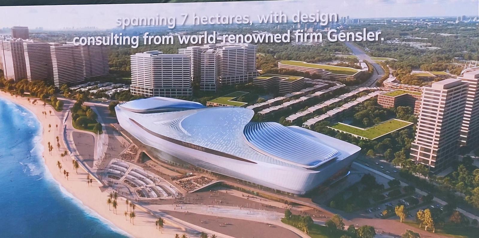 Điểm nhấn của dự án là Nhà hát Sóng Xanh với kiến trúc độc đáo có quy mô 5.000 chỗ ngồi. Ảnh phối cảnh Vingroup