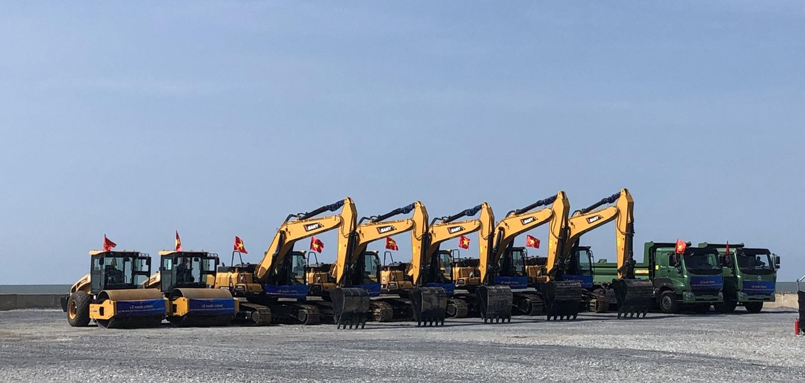 Đơn vị thi công chuẩn bị thiết bị, máy móc để phục vụ lễ khởi công dự án lấn biển. Ảnh: M.N