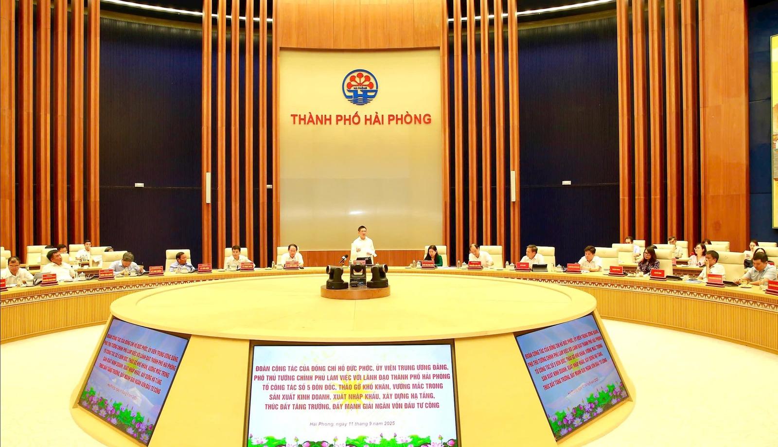 Chiều 11/9, tại Trung tâm Hội nghị - Biểu diễn thành phố, Phó Thủ tướng Chính phủ Hồ Đức Phớc đã dẫn đầu đoàn công tác làm việc với thành phố Hải Phòng. Mục tiêu của buổi làm việc là đôn đốc, tháo gỡ các khó khăn, vướng mắc, đồng thời thúc đẩy tăng trưởng kinh tế và đẩy mạnh giải ngân vốn đầu tư công tại địa phương.