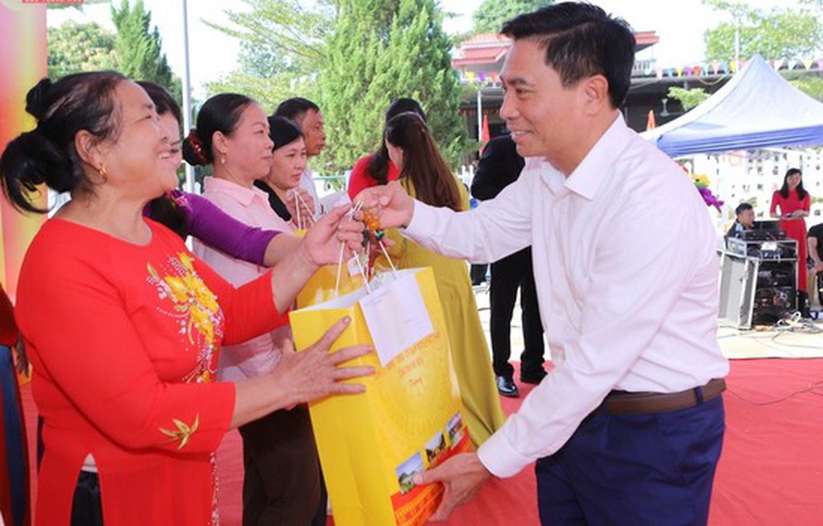Tặng quà cho nhân dân tại ngày hội đoàn đoàn kết dân tộc. Ảnh: Minh Hiếu