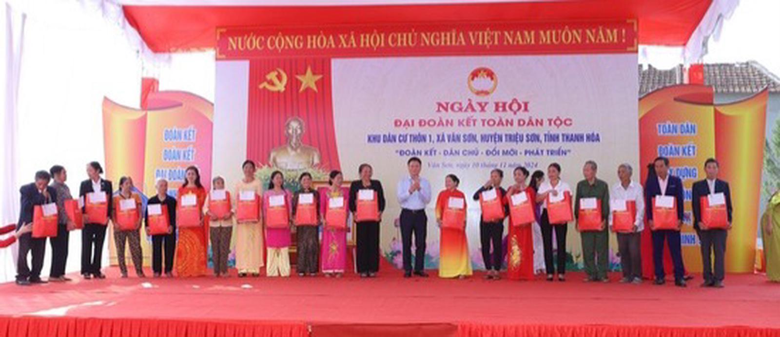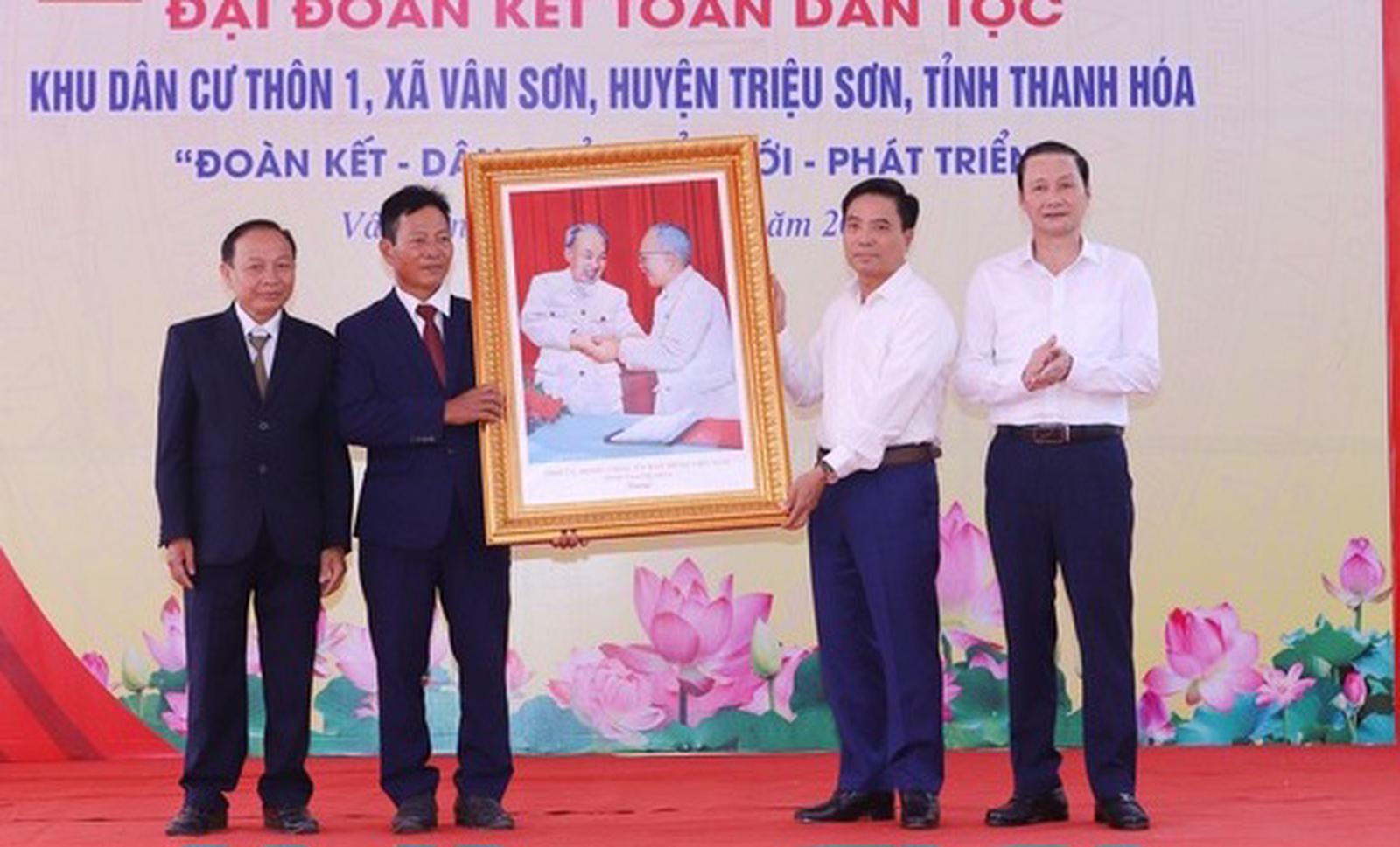 Các đồng chí Nguyễn Doãn Anh, Ủy viên Trung ương Đảng, Bí thư Tỉnh ủy Thanh Hóa; Đỗ Minh Tuấn, Phó Bí thư Tỉnh ủy, Chủ tịch UBND tỉnh Thanh Hóa tặng khu dân cư thôn 1, xã Vân Sơn bức ảnh Chủ tịch Hồ Chí Minh bắt tay Chủ tịch Tôn Đức Thắng - một biểu tượng cao đẹp, thiêng liêng của khối đại đoàn kết toàn dân tộc Việt Nam; trao 80 triệu đồng hỗ trợ hộ gia đình bà Vũ Thị Hồng Nại (thôn Vĩnh Yên, xã An Nông, huyện Triệu Sơn) xây dựng nhà Đại đoàn kết và trao quà các gia đình có hoàn cảnh khó khăn trên địa bàn xã Vân Sơn.