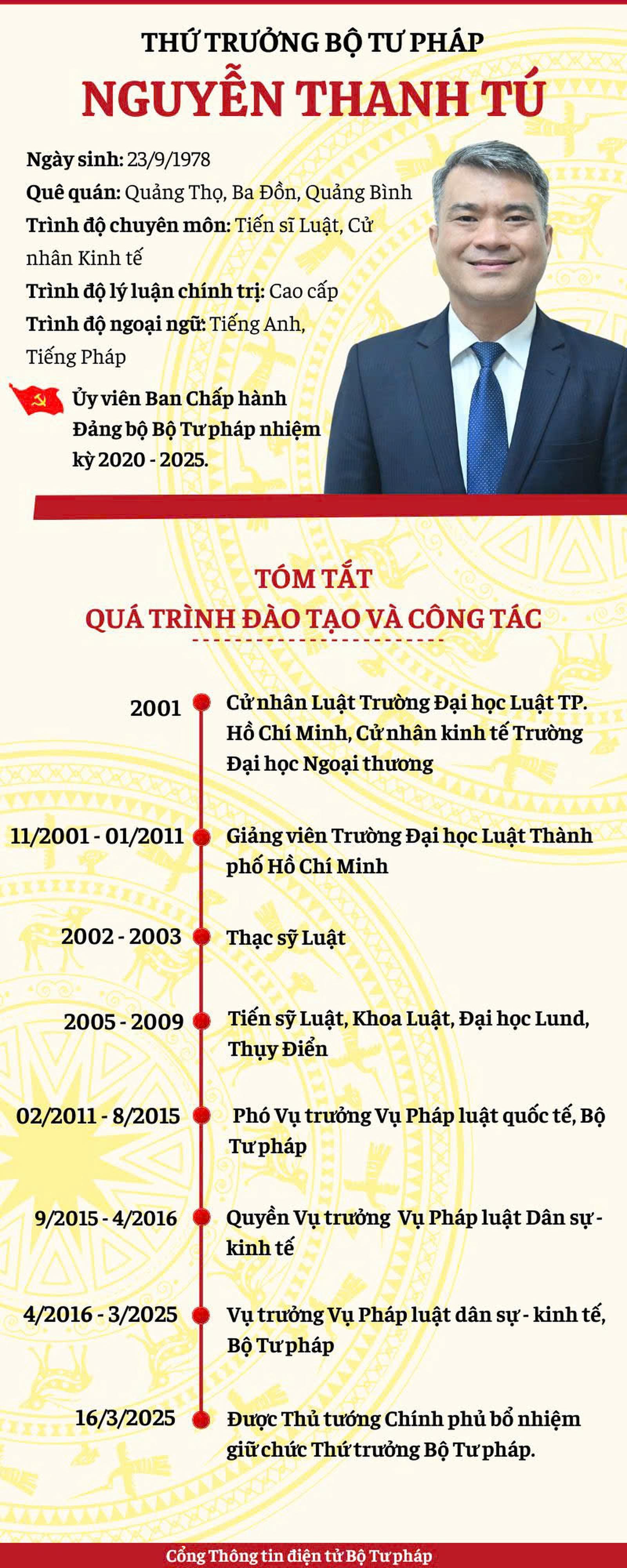 Ngày 16/3, ông được Thủ tướng Chính phủ bổ nhiệm giữ chức Thứ trưởng Bộ Tư pháp.