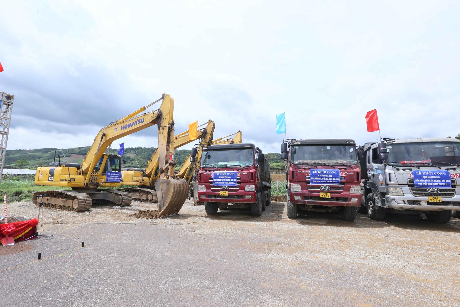 Các phương tiện, máy móc đã sẵn sàng thi công ngay sau lễ khởi công. Ảnh: Trấn Long