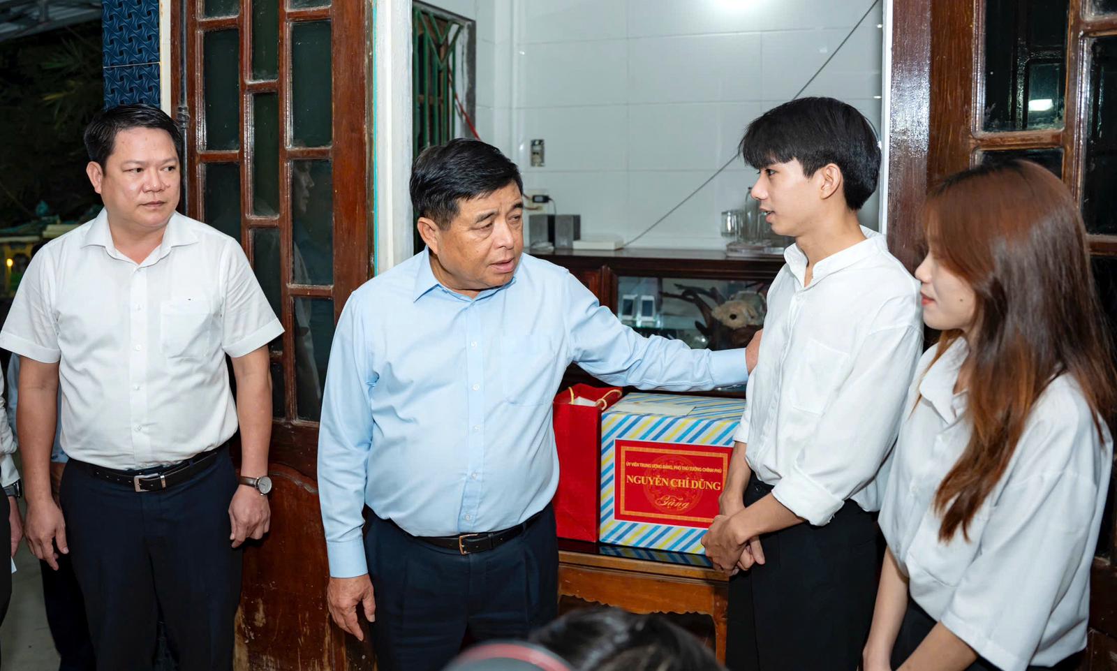 Phó Thủ tướng Nguyễn Chí Dũng thăm và tặng quà động viên cho gia đình ông Võ Viết Quang. Ảnh: HL