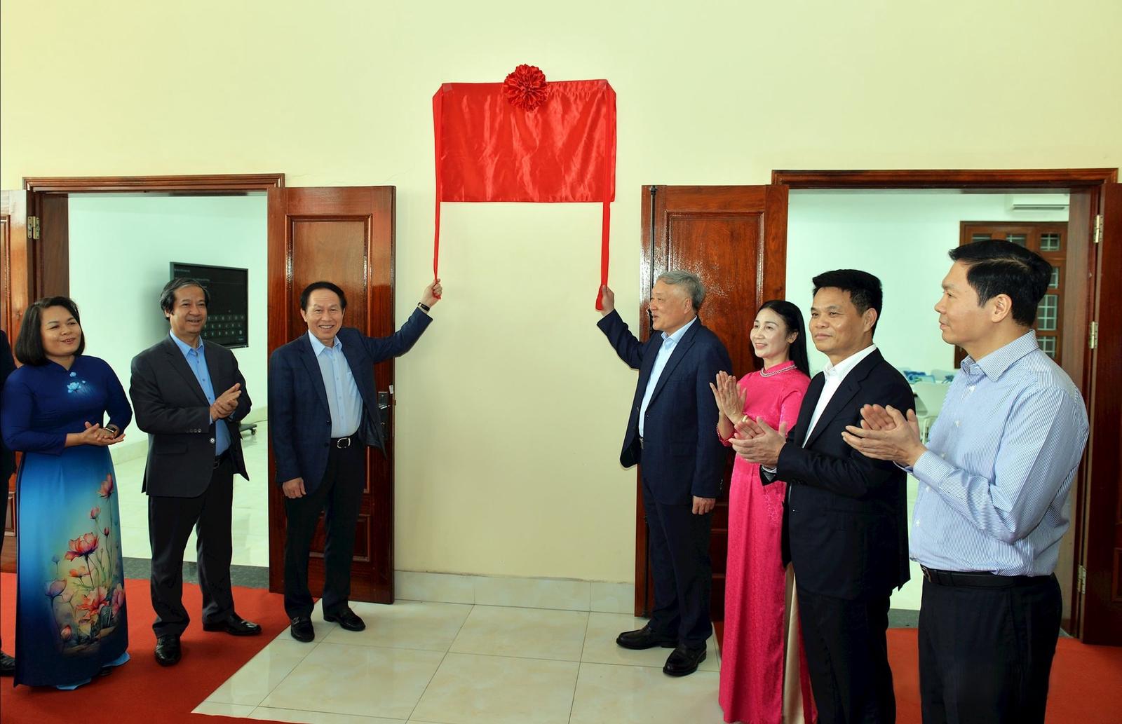 Phó Thủ tướng Thường trực Chính phủ Nguyễn Hòa Bình và Bí thư Thành ủy Hải Phòng Lê Tiến Châu cùng các đại biểu khai trương phòng học thông minh tại Trường THPT Kiến An. Ảnh: baohaiphong.vn