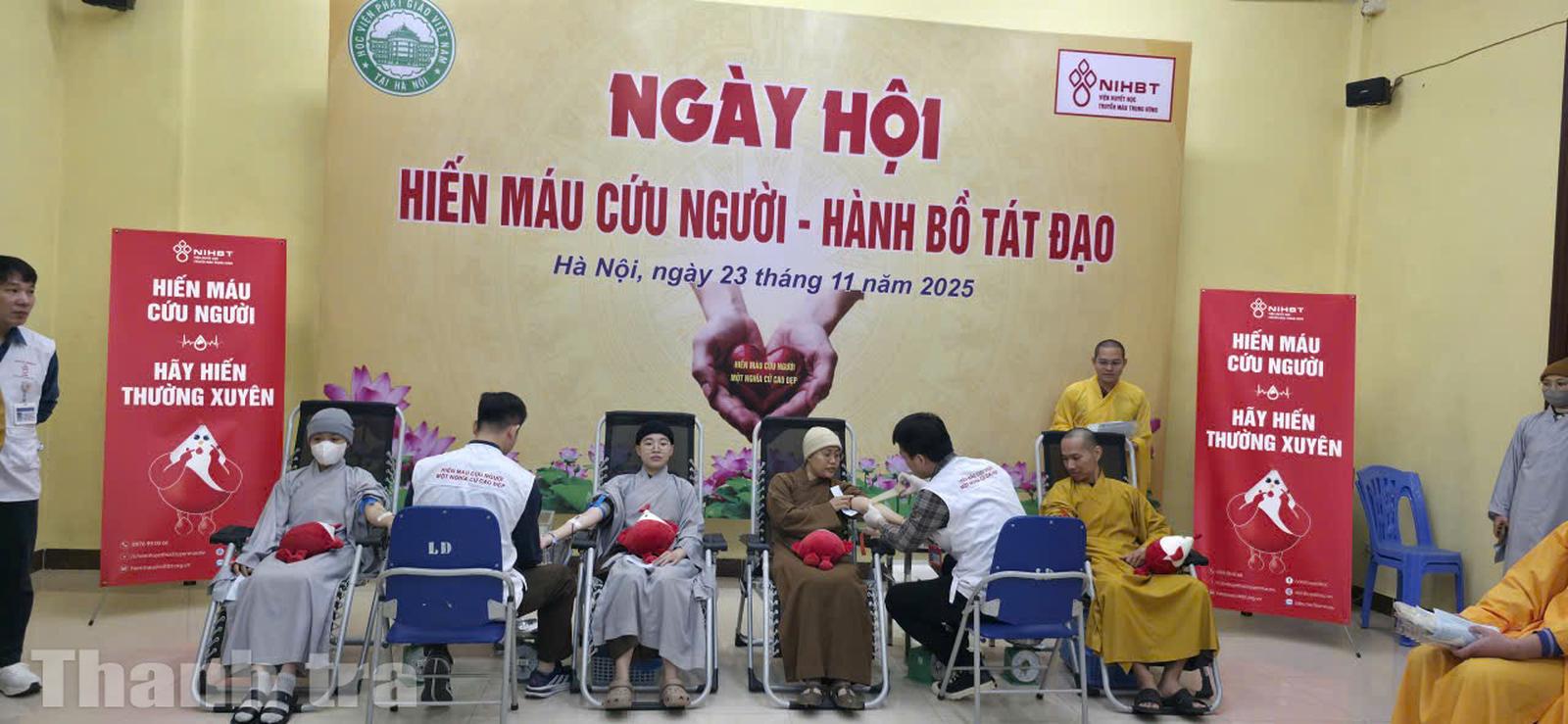 Ngày hội "Hiến máu cứu người - hành Bồ Tát đạo" thu hút hàng nghìn tăng ni, Phật tử và người dân tham gia. Sự kiện cũng là dịp để học viện phát động hỗ trợ đồng bào miền Trung đang chịu ảnh hưởng nặng nề bởi mưa lũ.
