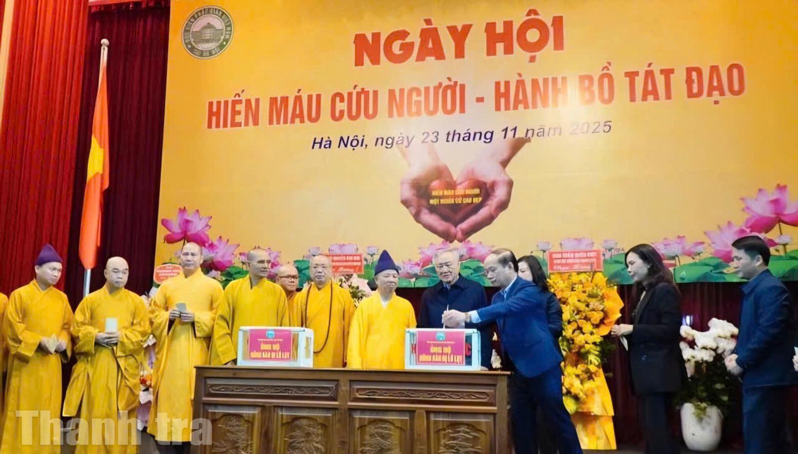 (Thanh tra) - Học viện Phật giáo Việt Nam tại Hà Nội phối hợp với Viện Huyết học - Truyền máu Trung ương tổ chức Ngày hội "Hiến máu cứu người - hành Bồ tát đạo" vào sáng nay (23/11). Sự kiện có sự tham dự của Phó Thủ tướng Thường trực Chính phủ Nguyễn Hòa Bình; Bộ trưởng Bộ Y tế Đào Hồng Lan, Trưởng Ban Chỉ đạo quốc gia vận động hiến máu tình nguyện; đại diện các bộ, ngành, chư tôn đức lãnh đạo Giáo hội Phật giáo Việt Nam (GHPGVN) và các tăng ni, phật tử.