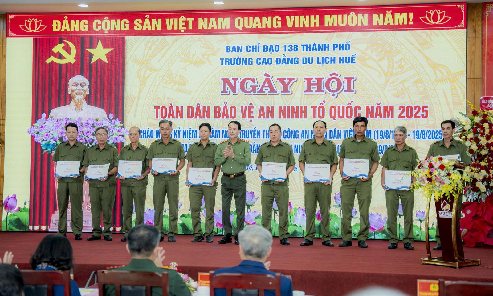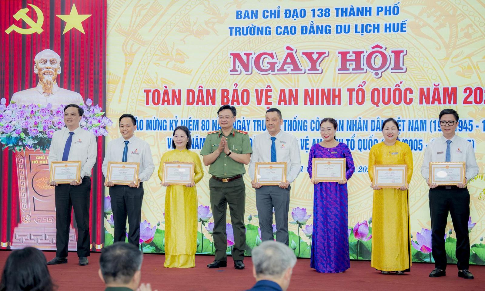 Trong khuôn khổ chương trình, Ban Tổ chức đã trao nhiều phần thưởng và quà ý nghĩa nhằm ghi nhận, động viên các tập thể, cá nhân có thành tích xuất sắc trong phong trào bảo vệ an ninh Tổ quốc và hỗ trợ các hoàn cảnh khó khăn. Trong đó, Bộ Công an trao Bằng khen cho tập thể cán bộ, giảng viên, sinh viên Trường Cao đẳng Du lịch Huế. UBND TP Huế trao Bằng khen cho 4 tập thể và 1 cá nhân có nhiều đóng góp trong phong trào. Công an TP Huế trao Giấy khen cho 2 tập thể và 5 cá nhân tiêu biểu.